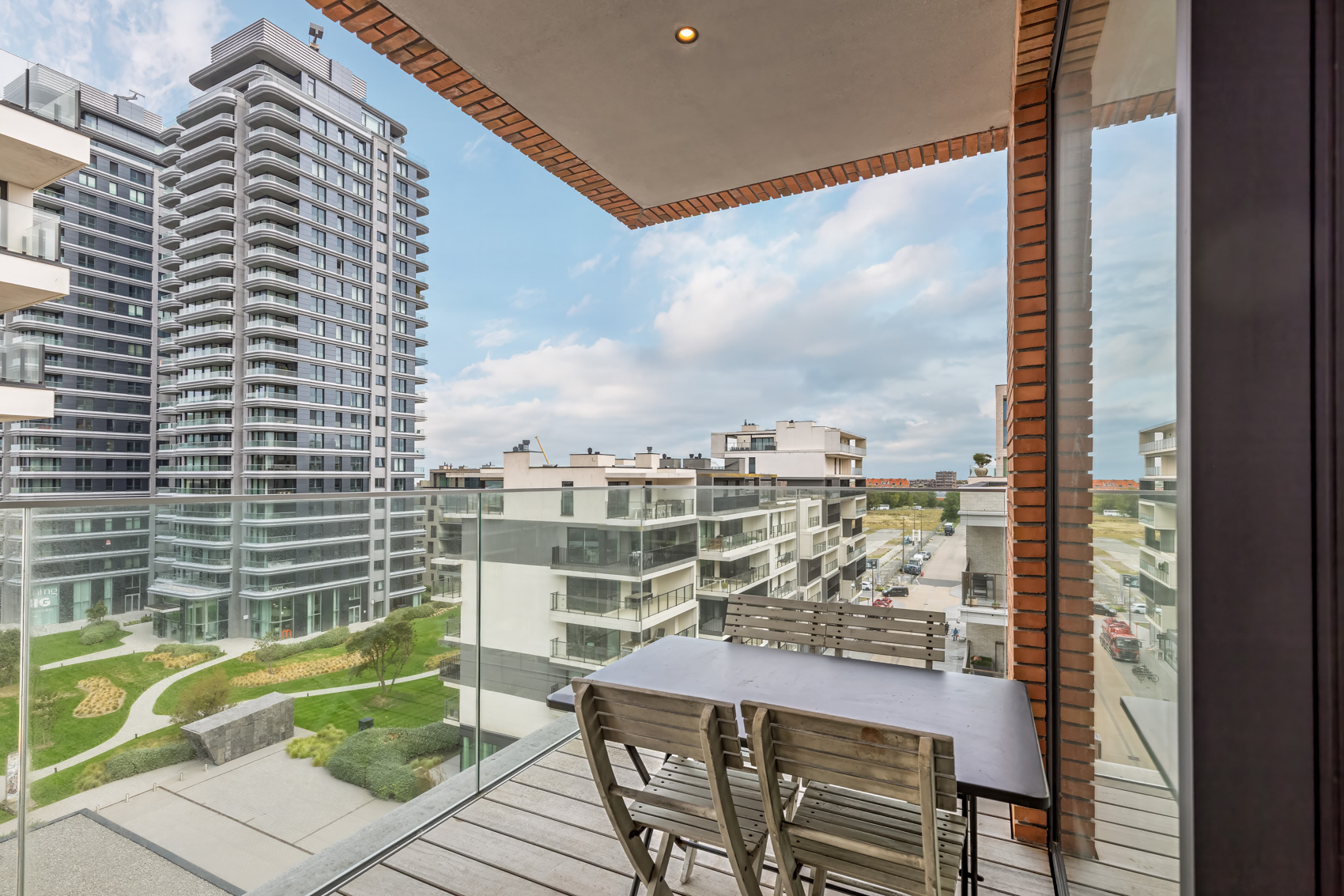 Dit lichtrijk appartement bevindt zich op de 6e verdieping van de residentie Baelskaai 14, aan de Hendrik Baelskaai te Oostende (Oosteroever).