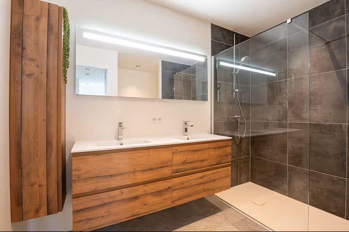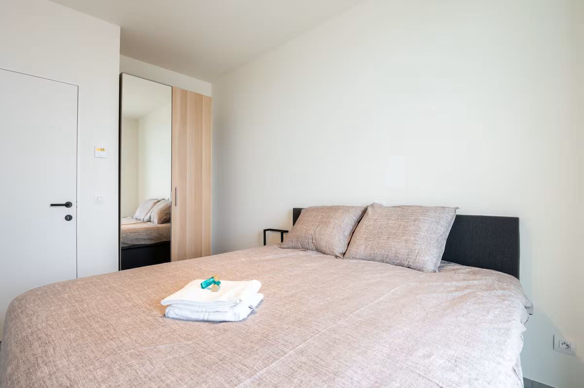 Het appartement beschikt over twee slaapkamers, en een bureau en een badkamer met inloopdouche, modern lavabomeubel en handdoekdroger.