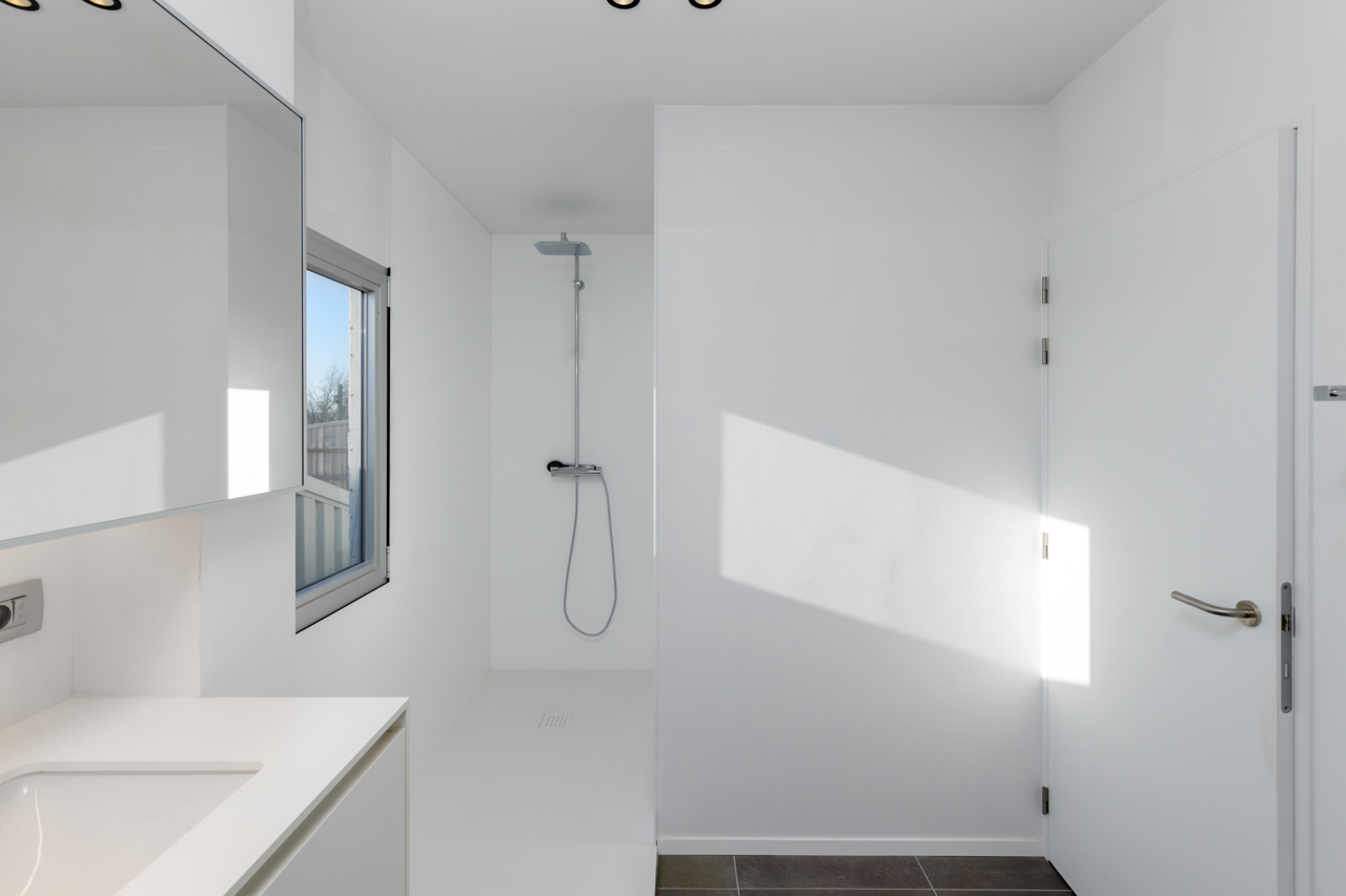 Via de nachthal met ingemaakte kasten komt u bij de 3 slaapkamers. Iedere slaapkamer is voorzien van ingemaakte kasten. Badkamer met dubbel lavabomeubel en inloop regendouche. Apart toilet.