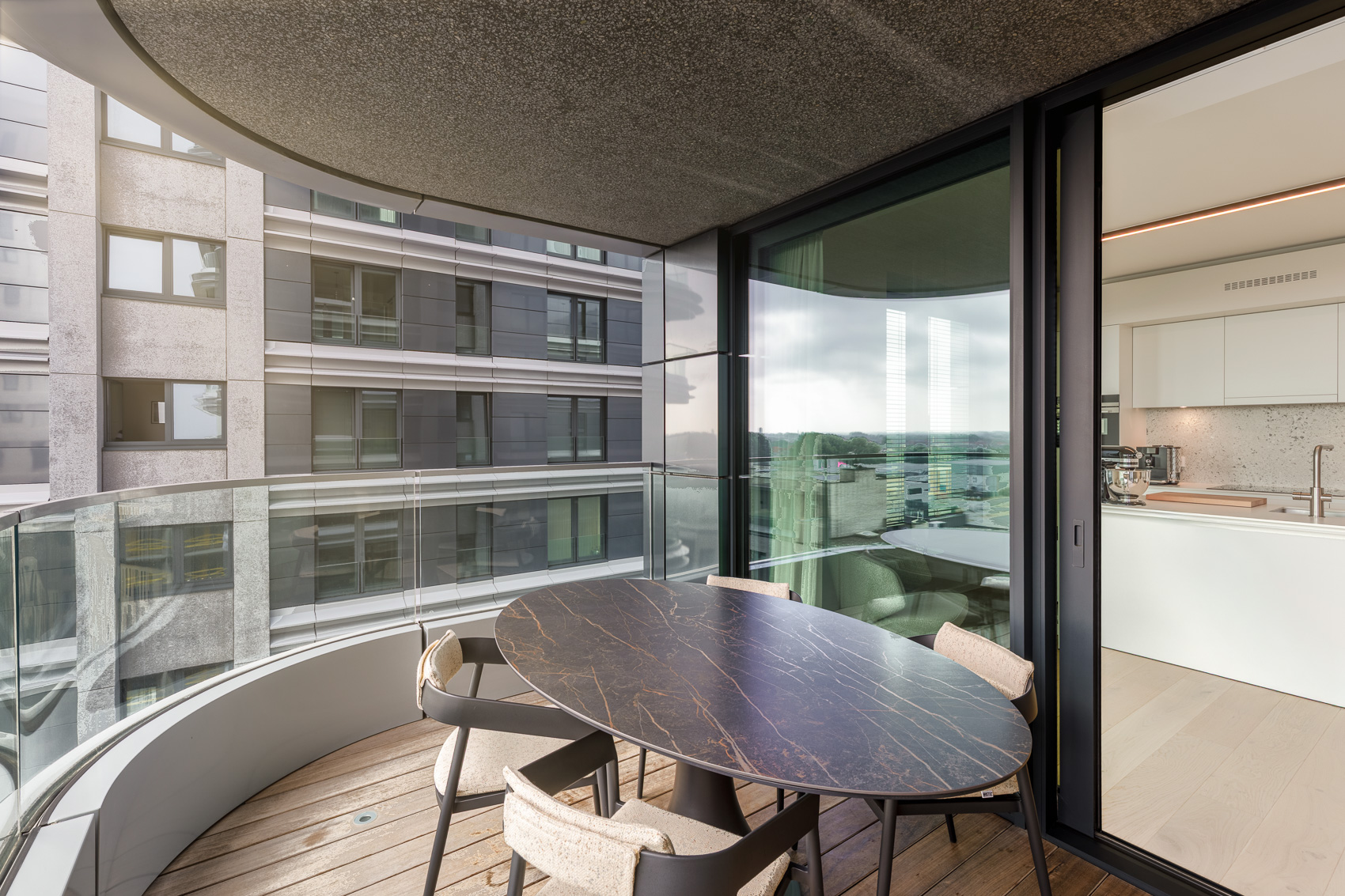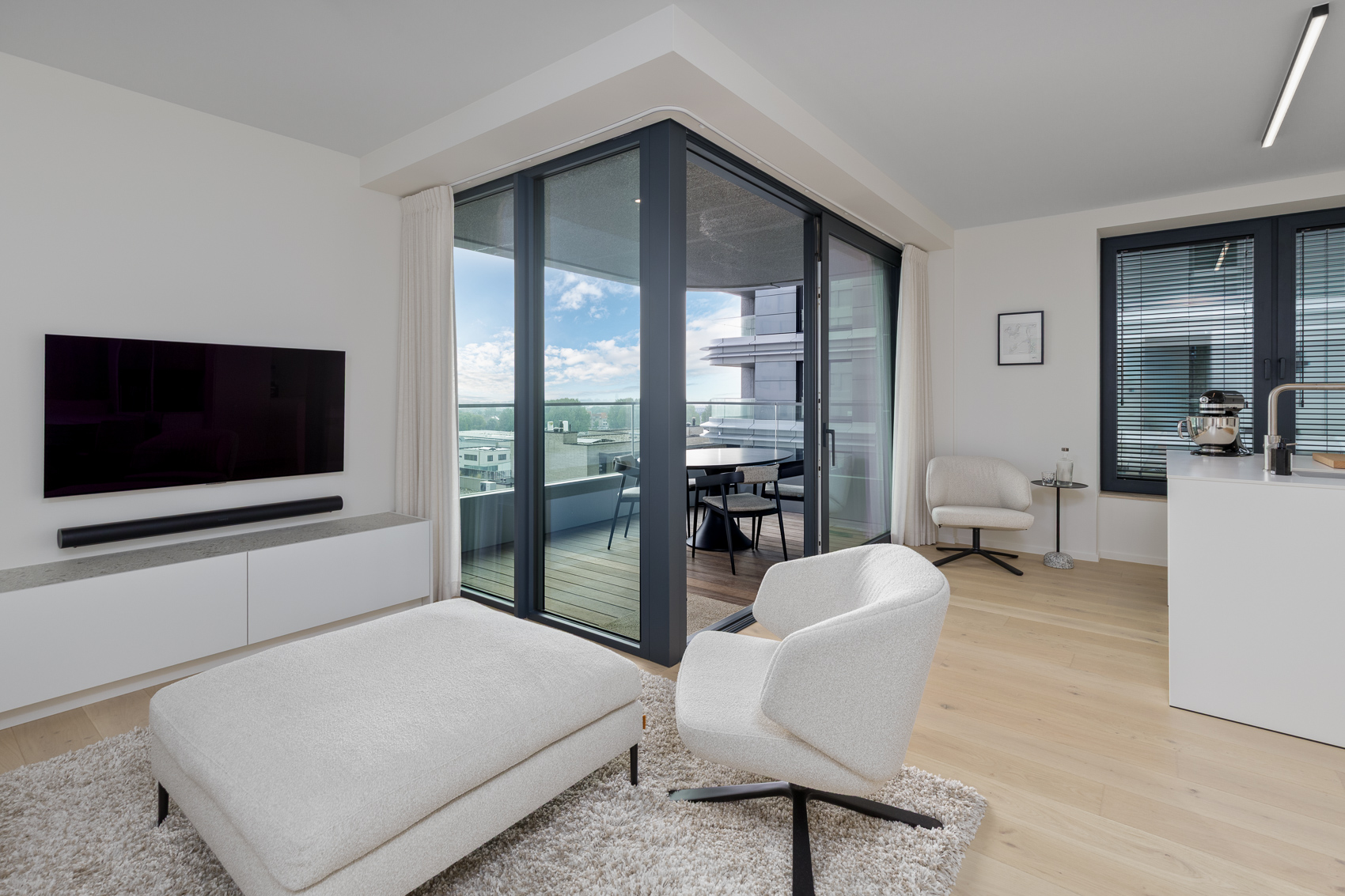 Ontdek dit stijlvol hoekappartement in de Ensor Tower II in Oostende.