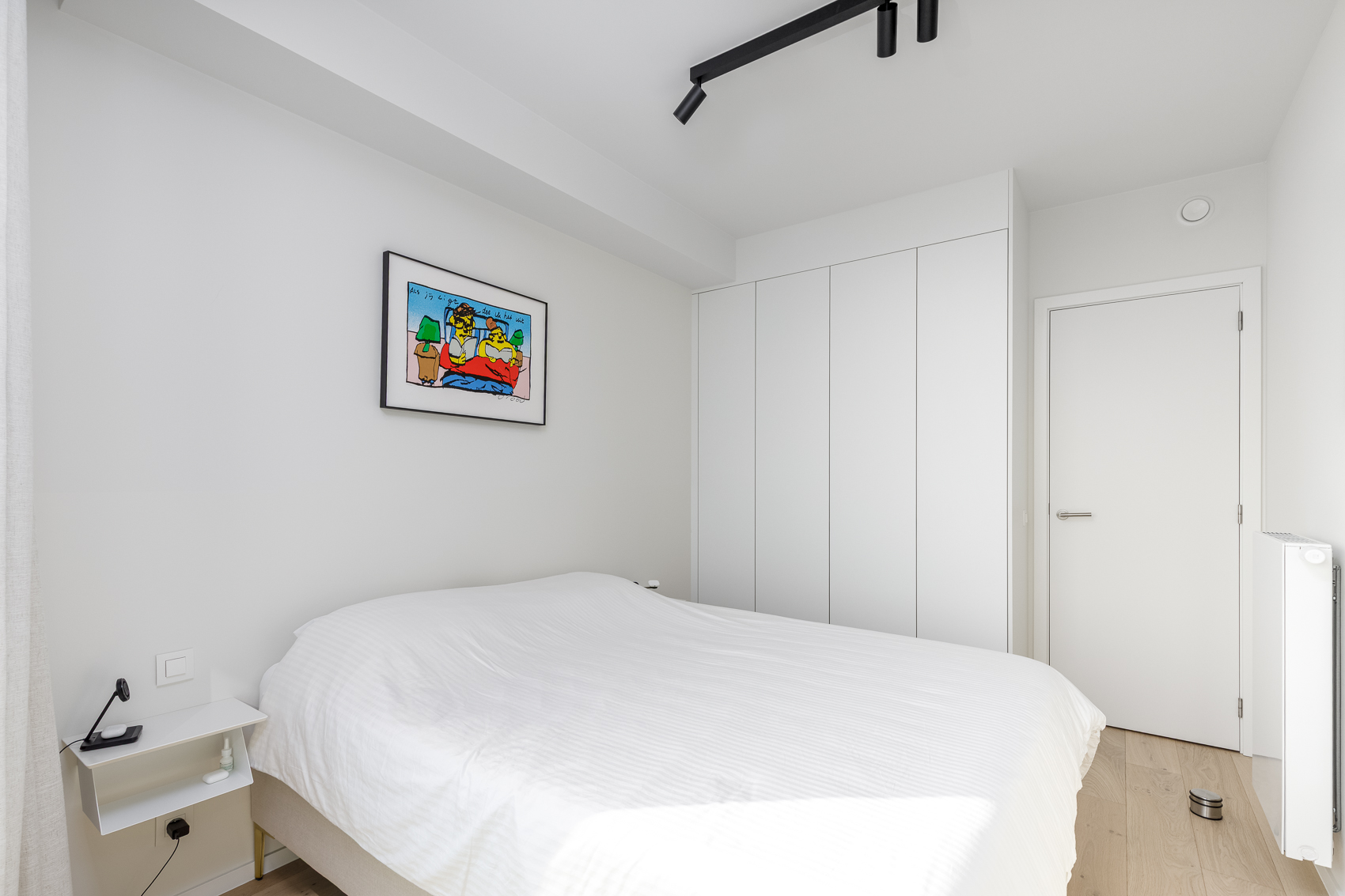 Het volledige appartement is uitgerust met parketvloeren, maatwerk kasten, richtbare spots en vloerverwarming.