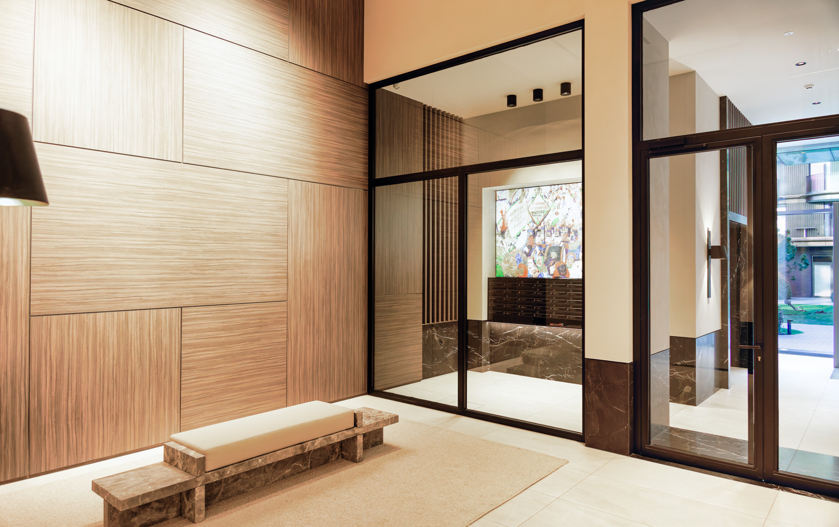 Het volledige appartement is voorzien van parket en een beige tegel in de natte delen. Maatwerk kasten in de slaapkamers, inkomhal en TV-meubel. De ramen zijn in aluminium. Vloerverwarming aangesloten op het warmtenet.