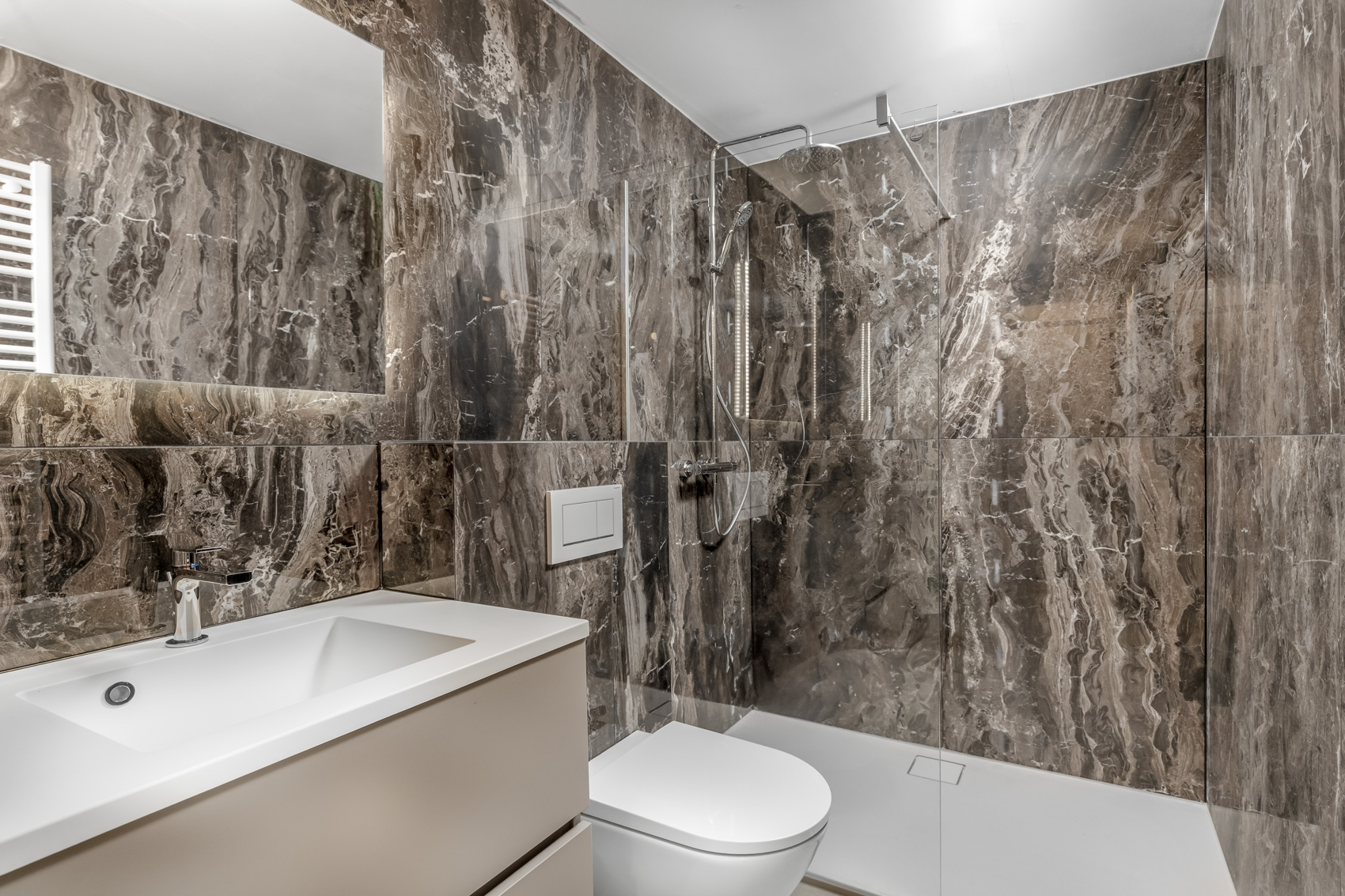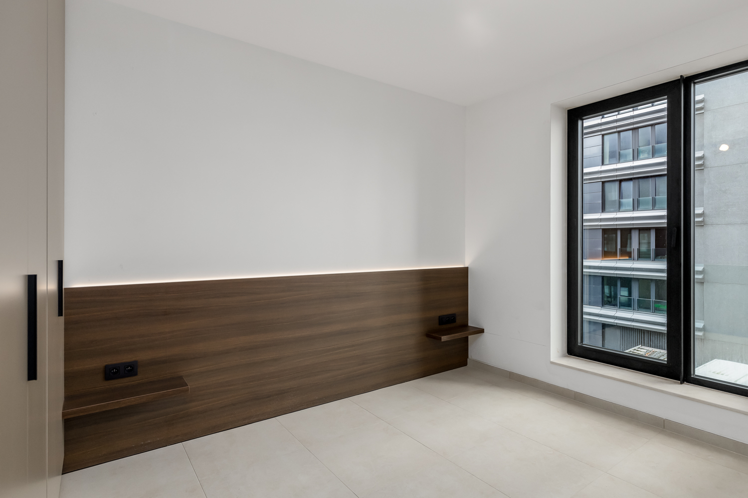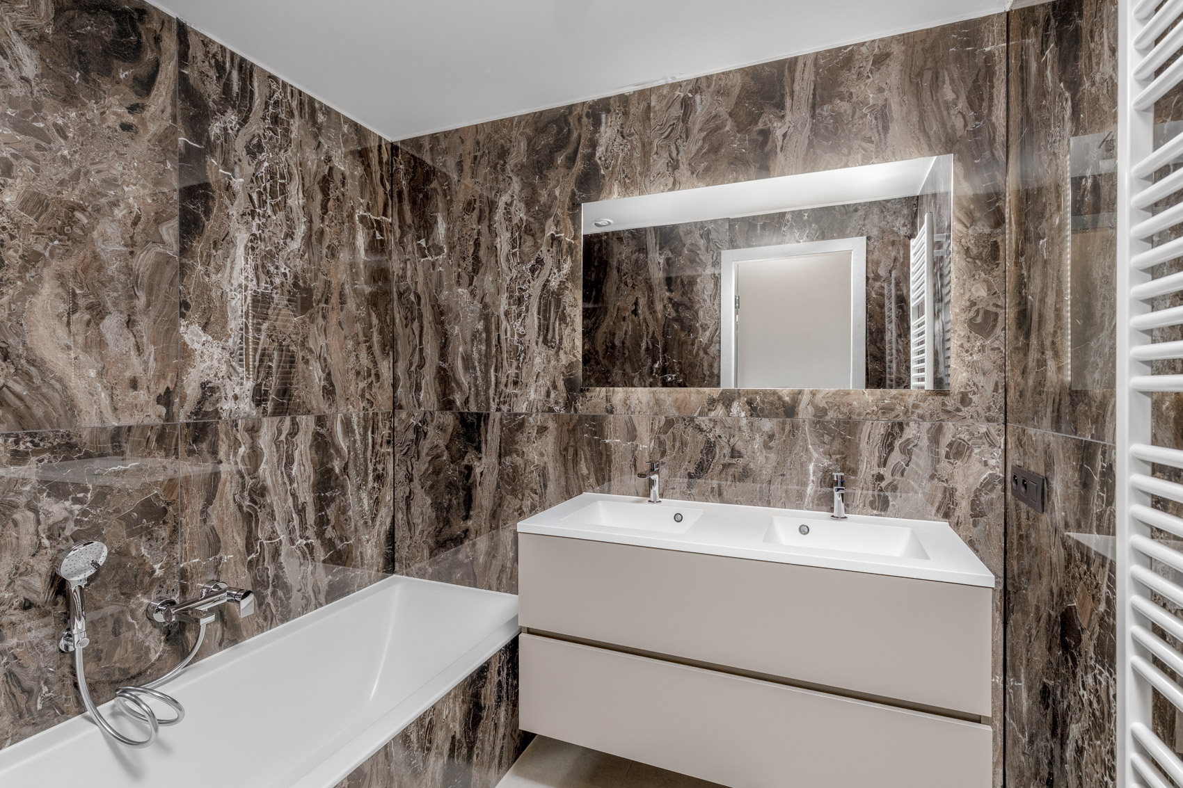 De 3 slaapkamers liggen naast de leefruimte waarvan 2 achteraan en 1 vooraan. De twee grote slaapkamers hebben een geïntegreerd hoofbord met indirecte verlichting en maatwerk kleerkast. Zowel de douchekamer als de badkamer zijn voorzien van groot formaat wandbetegeling tot aan het plafond. Alle kraanwerk is van Gessi.