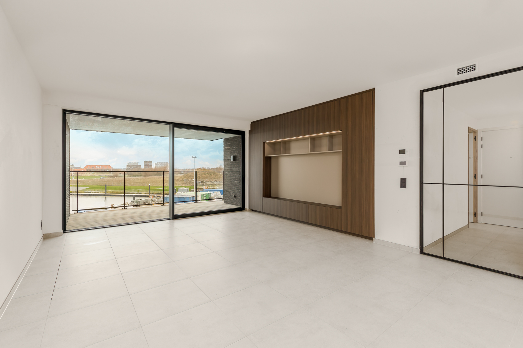 Nieuw appartement gelegen op de tweede verdieping met zicht op de nieuwe jachthaven, de duinen en het Fort Napoleon. Het appartement is gelegen op de nieuwe site Oosteroever te Oostende.