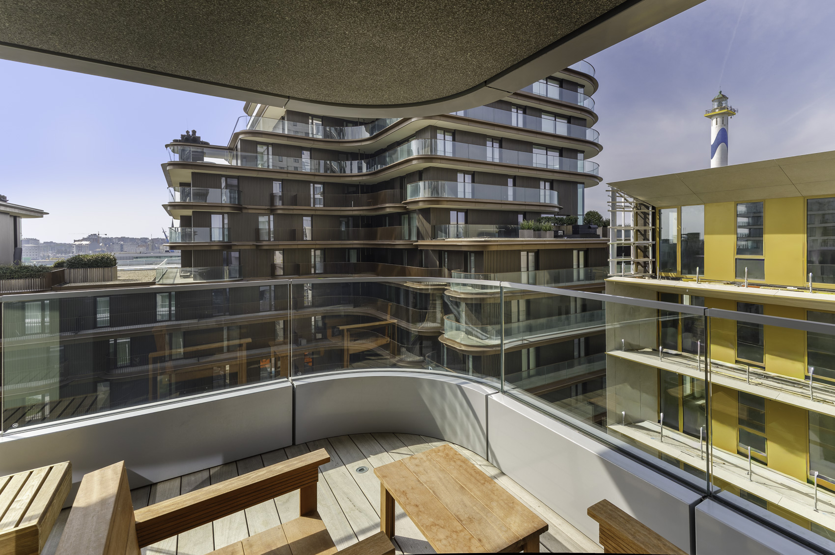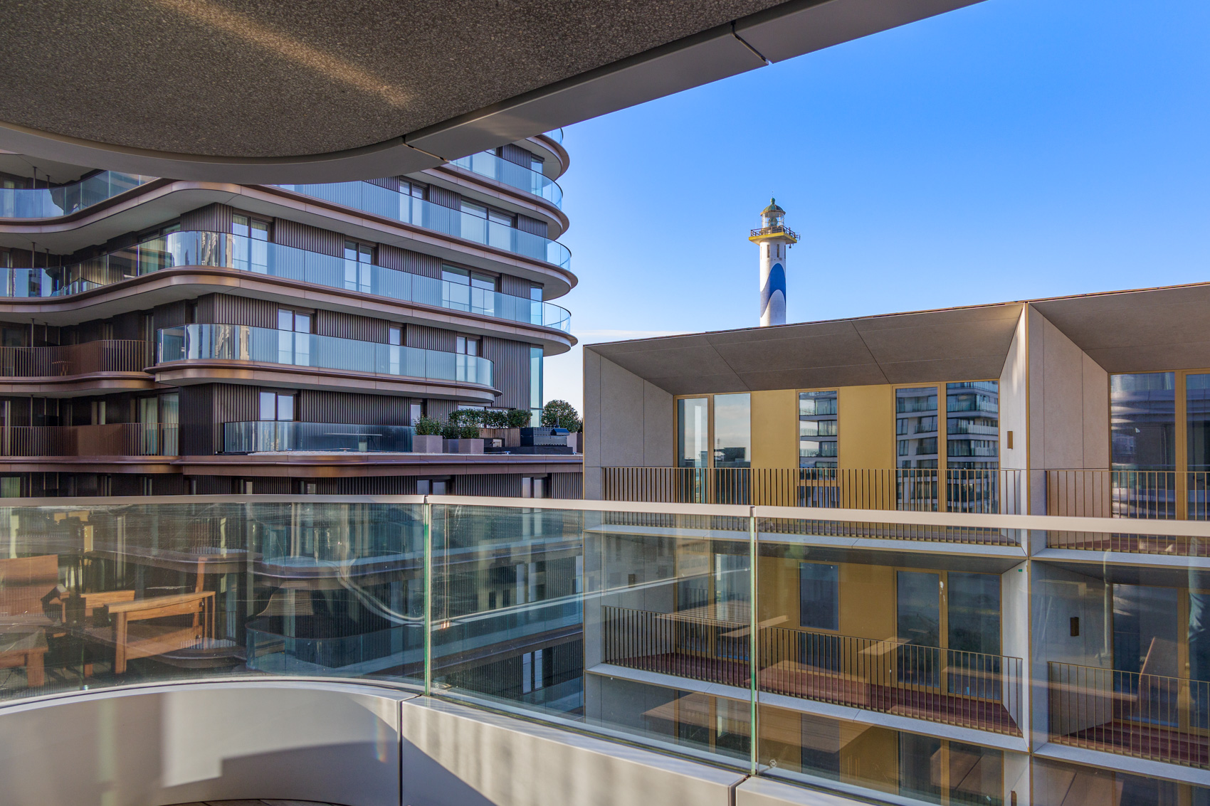 Bij het binnenkomen wordt u verwelkomd in een ruime inkomhal met apart gastentoilet. Via een elegante steellook glazen deur betreedt u de lichtrijke leefruimte. Aansluitend bevindt zich een zonnig terras, perfect georiënteerd op de middag- en avondzon, waar u bovendien een uniek zicht heeft op de Vuurtoren.