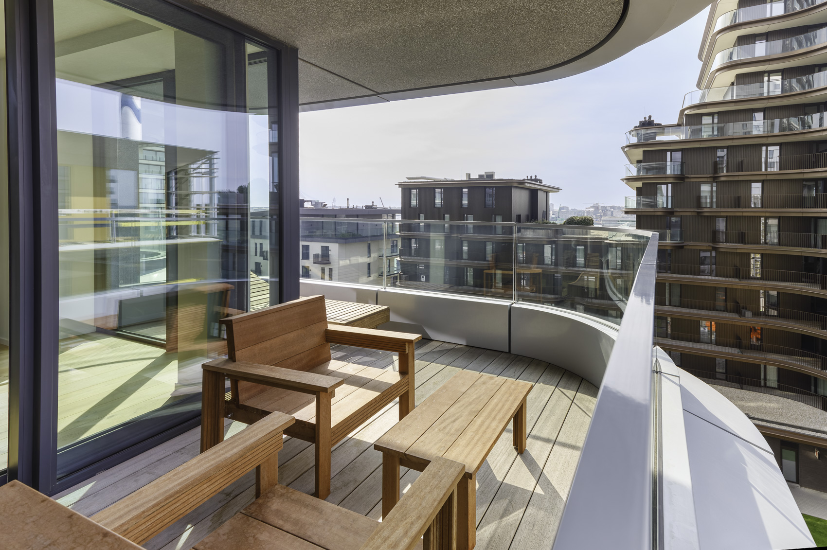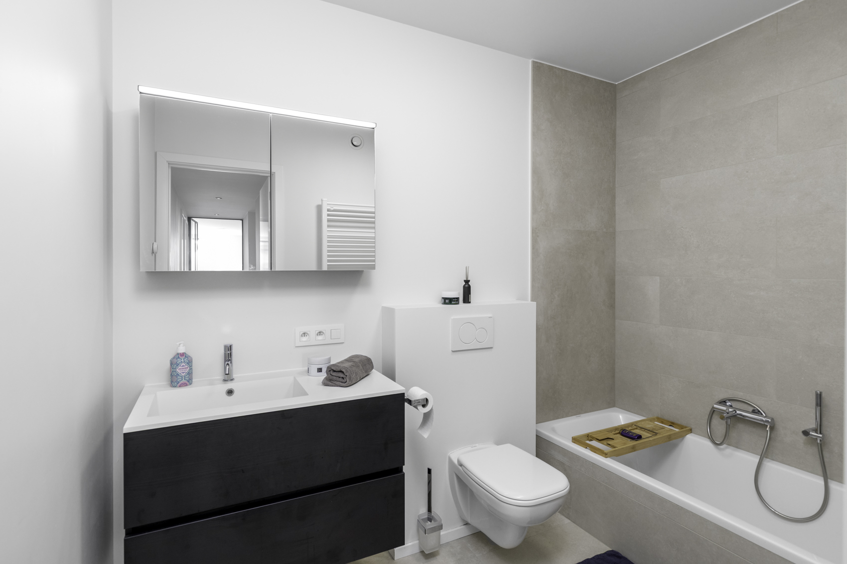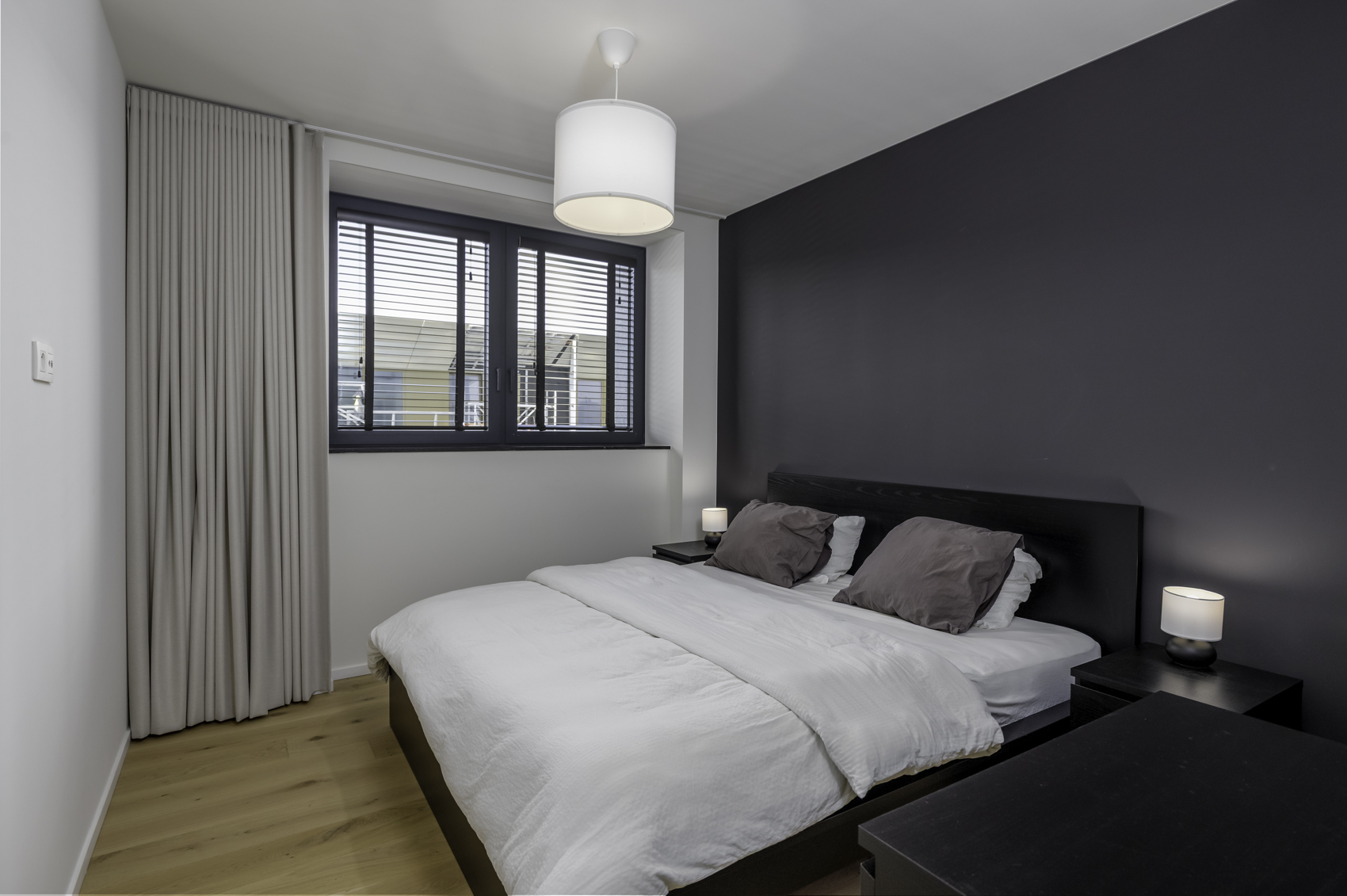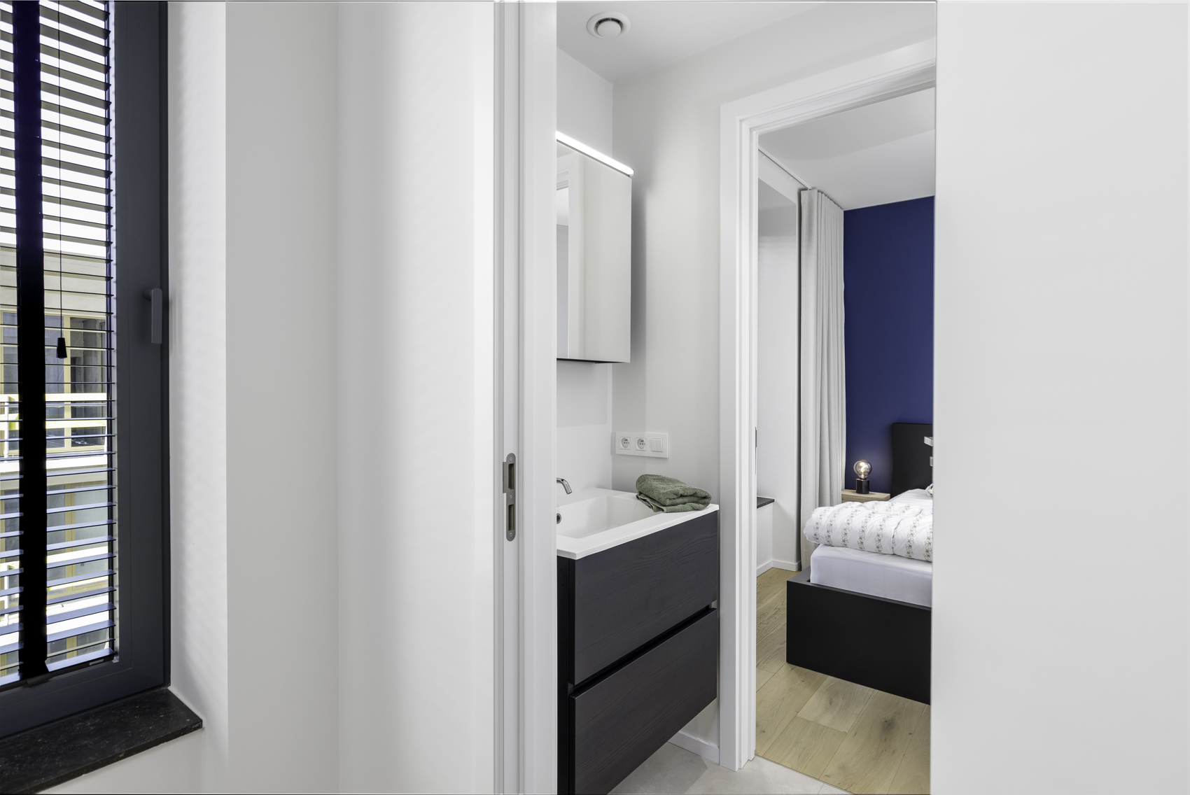 Het appartement beschikt over drie slaapkamers. De eerste slaapkamer heeft een ensuite douchekamer die gedeeld wordt met de tweede slaapkamer. Daarnaast is er een derde slaapkamer en een afzonderlijke badkamer uitgerust met ligbad, lavabomeubel en toilet.