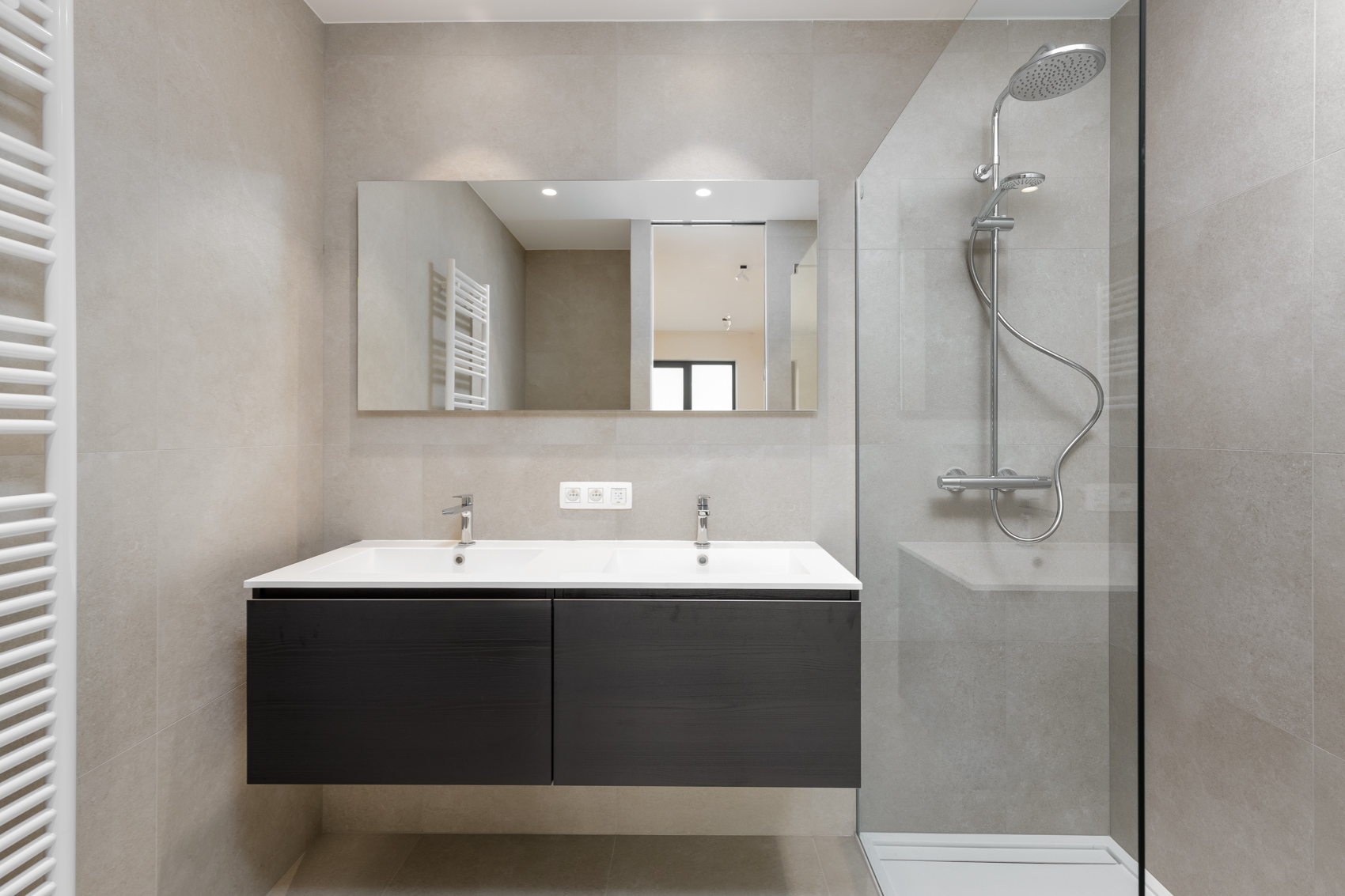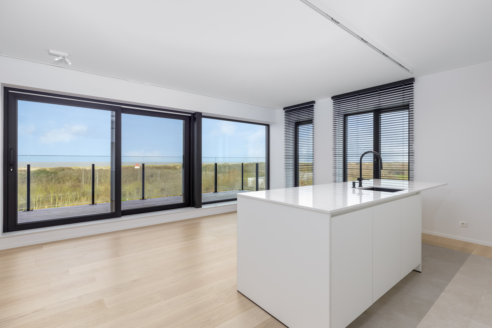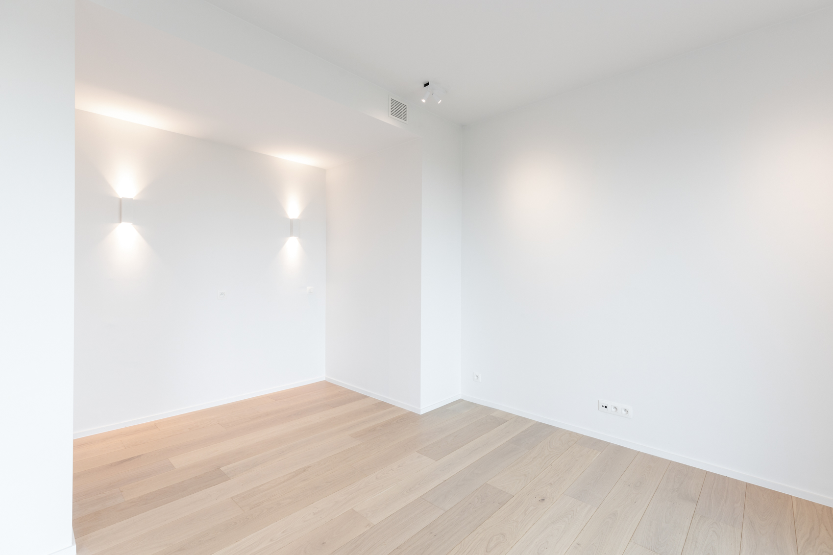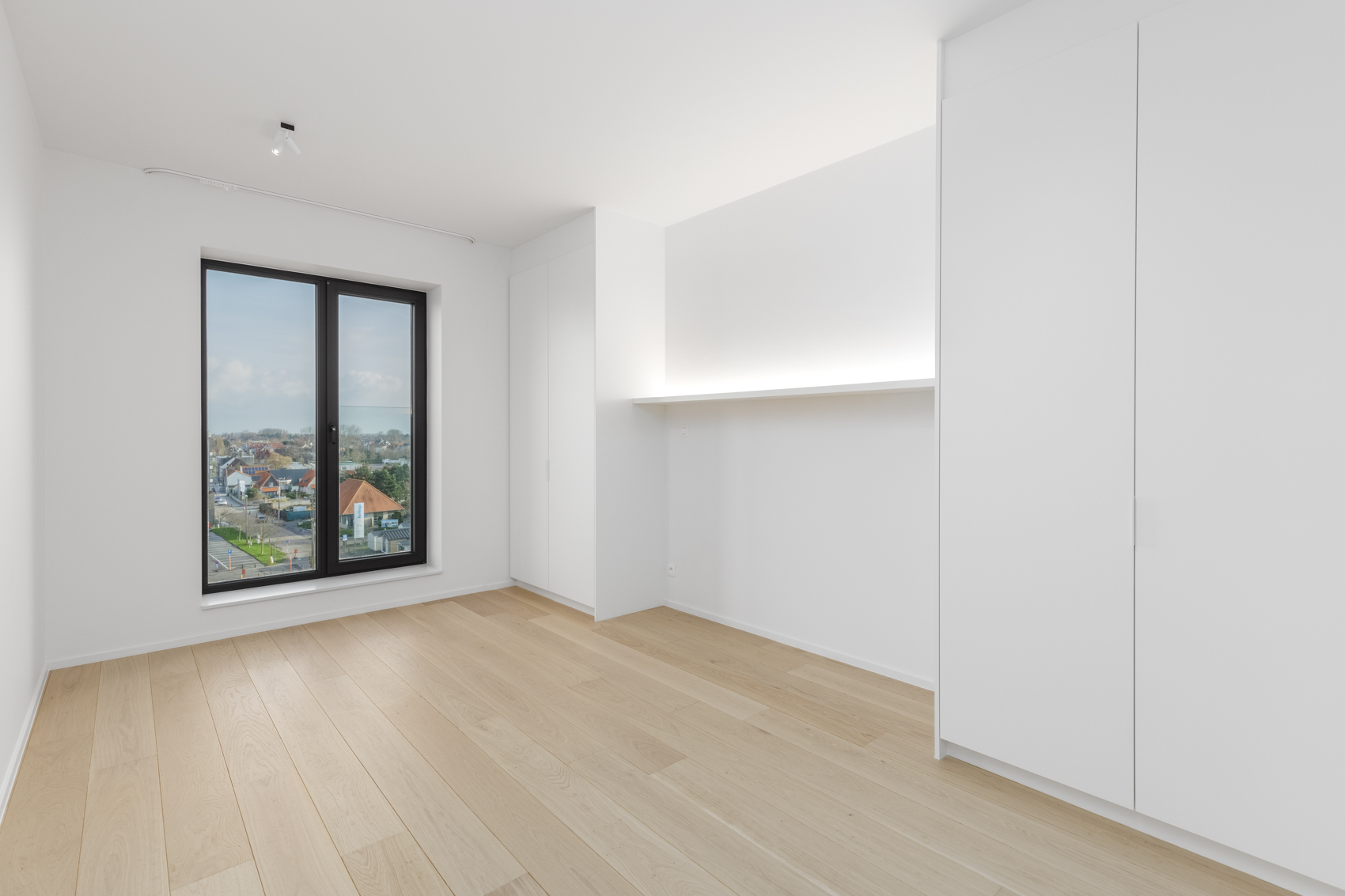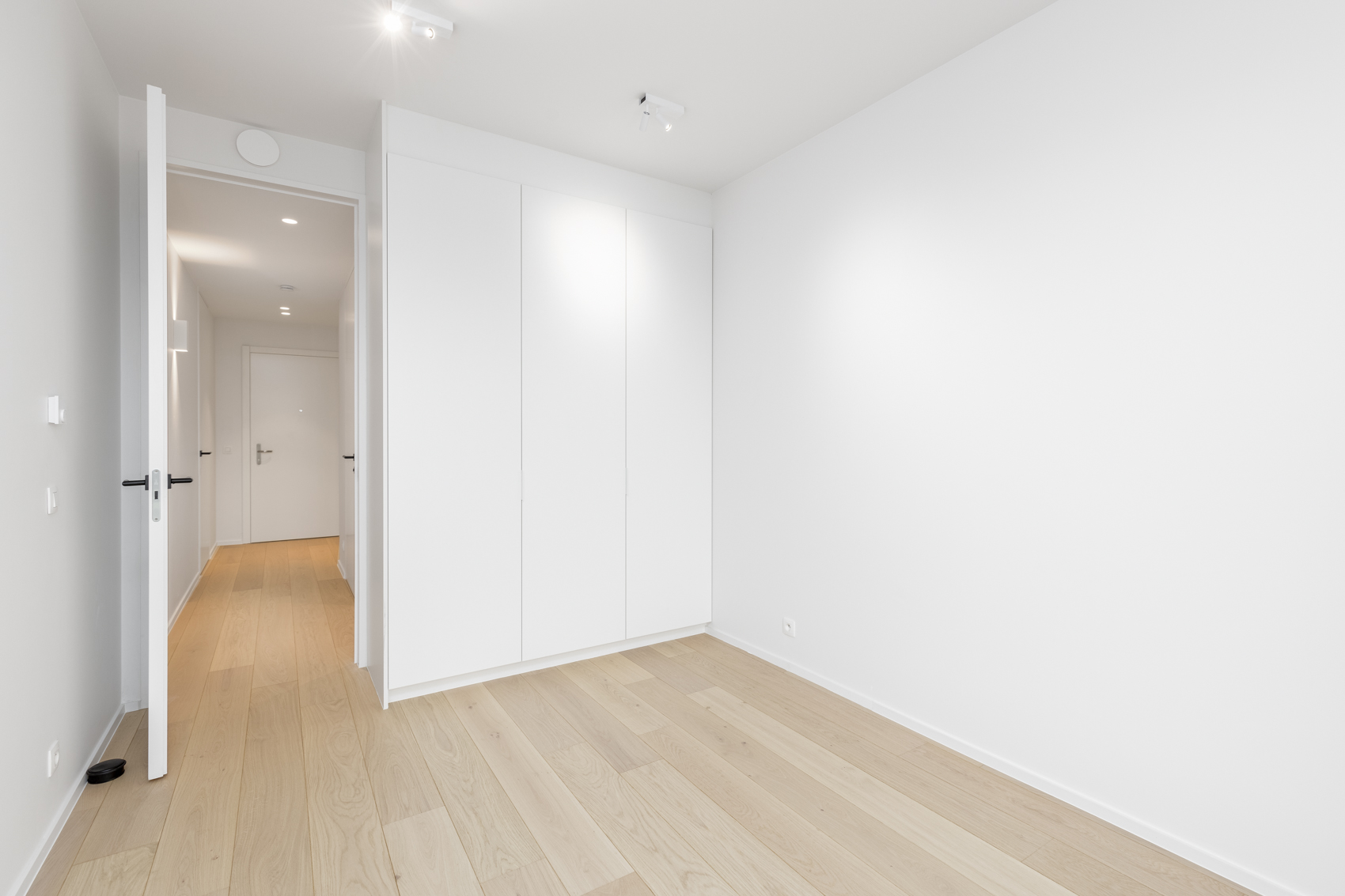 Het volledige appartement is voorzien van: parket, kamerhoge blokkaderdeuren, vloerverwarming, verlichting, gordijnen en schilderwerk. Een geïntegreerde vliegen hor aan het schuifraam,
