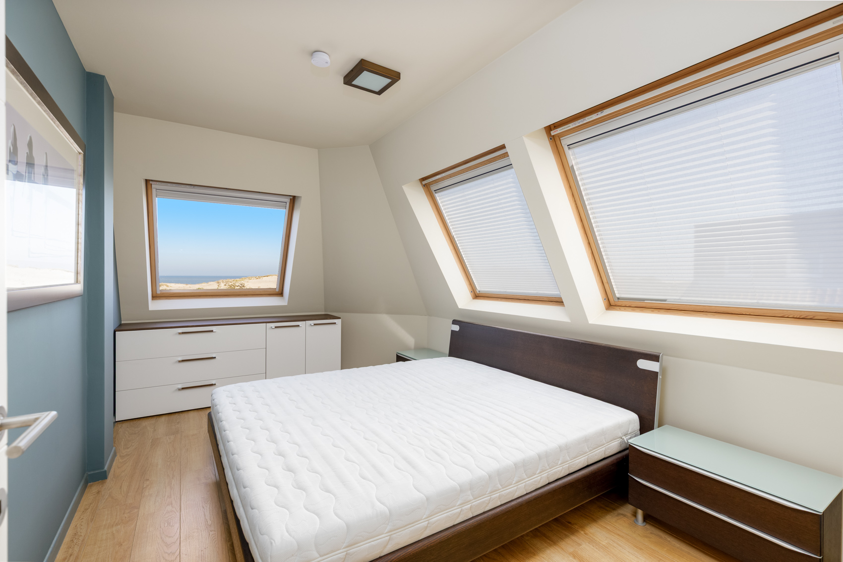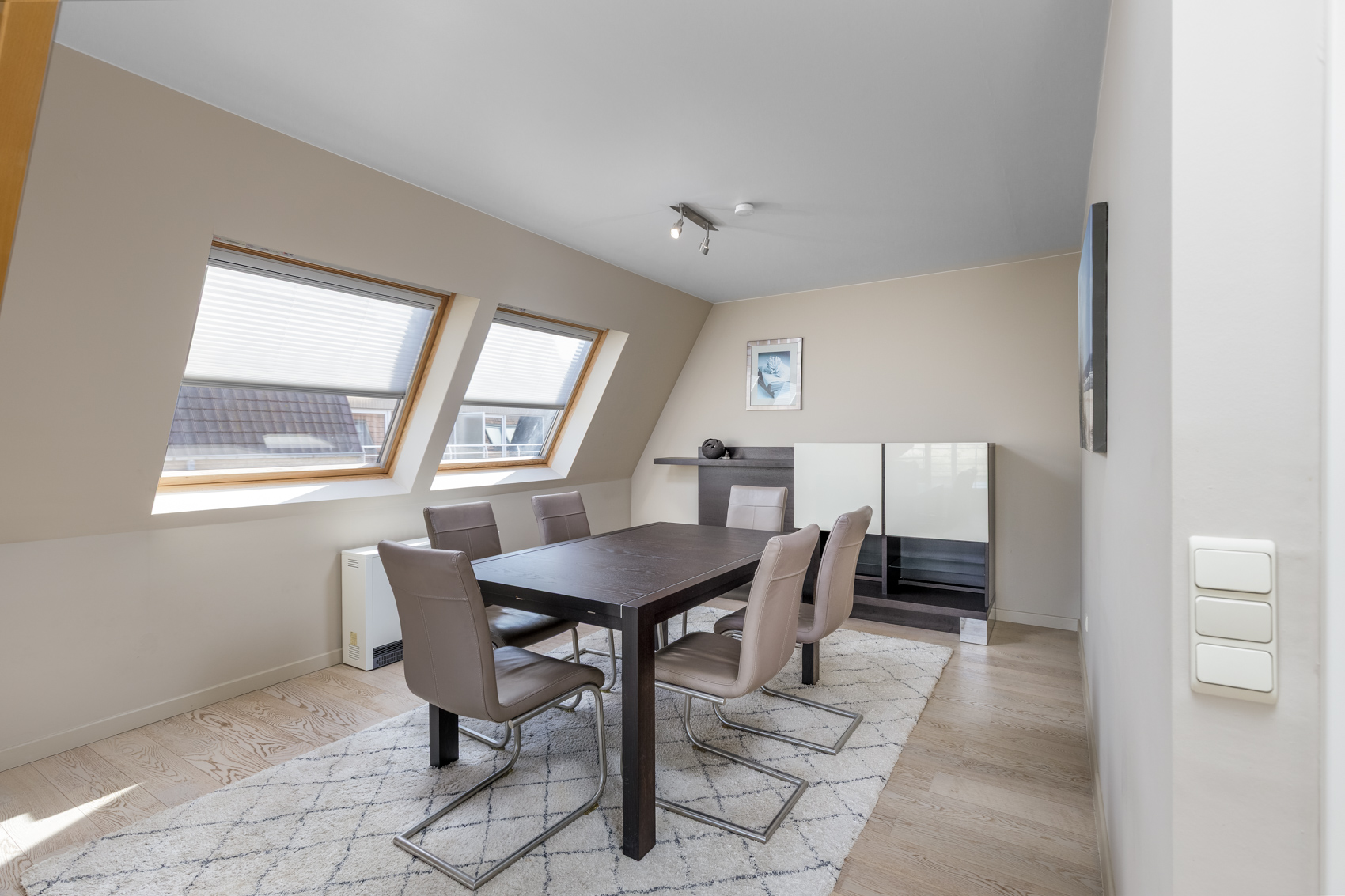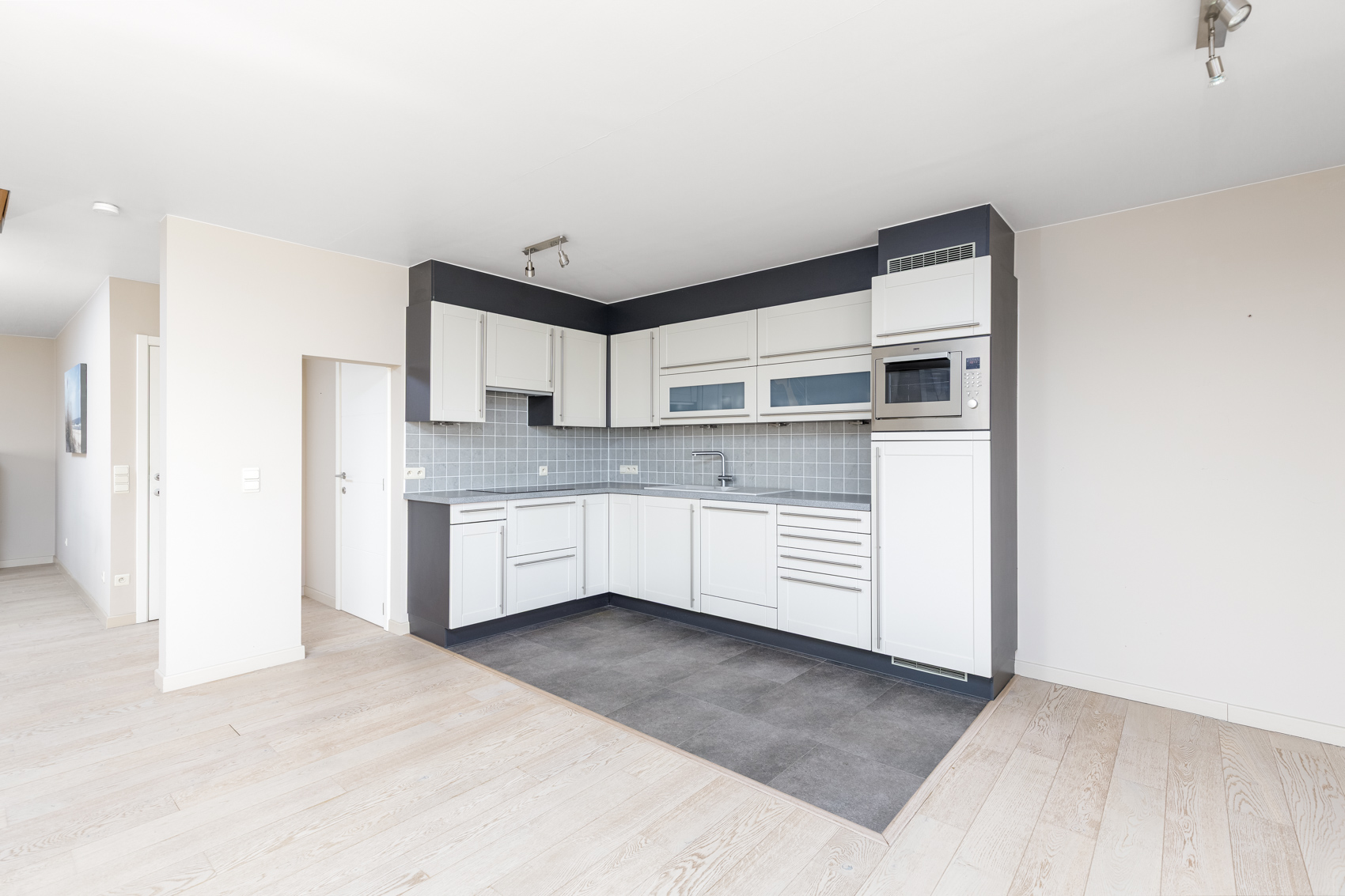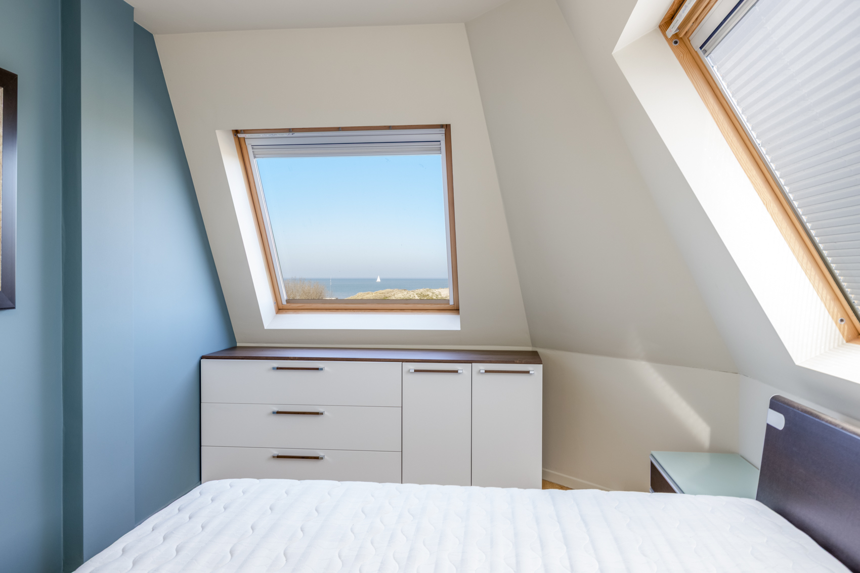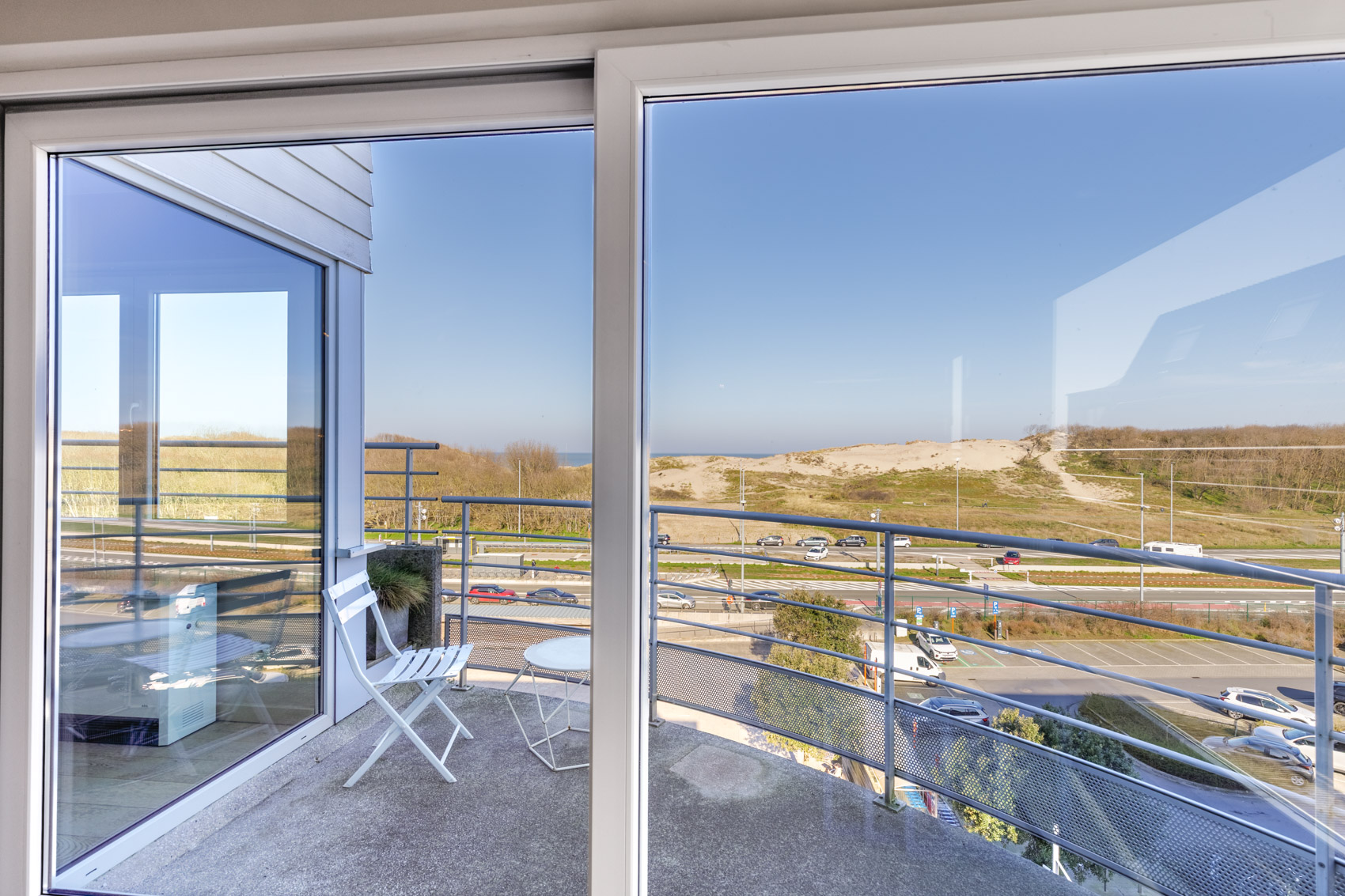 Dankzij de gunstige hoekligging en de brede leefruimte van maar liefst 7 meter geniet het appartement van een uitzonderlijke lichtinval en een prachtig panoramisch zicht op de duinengordel.