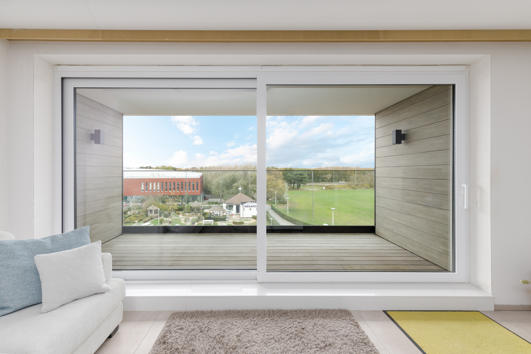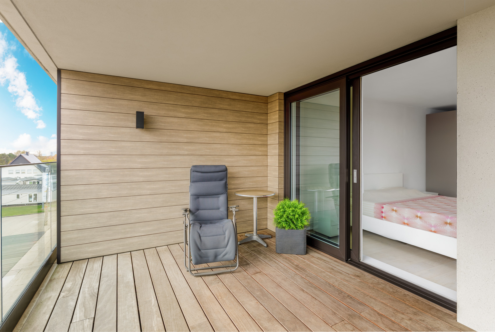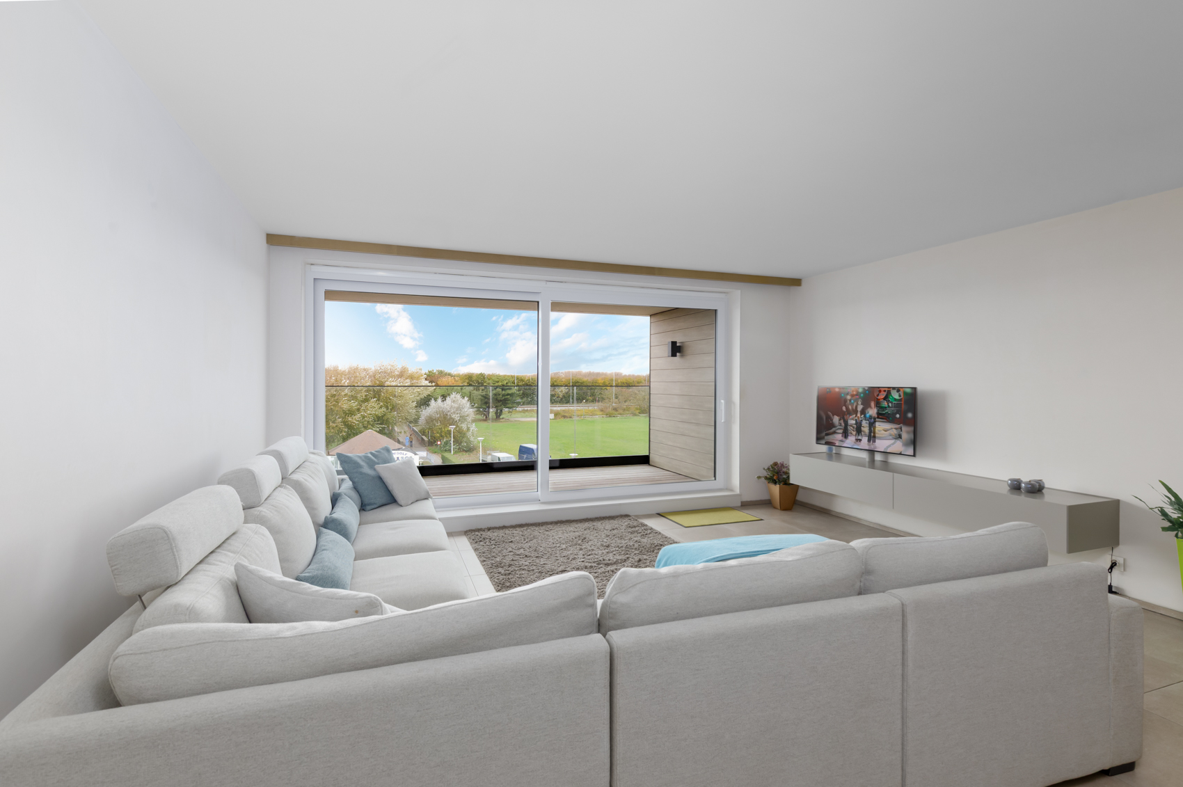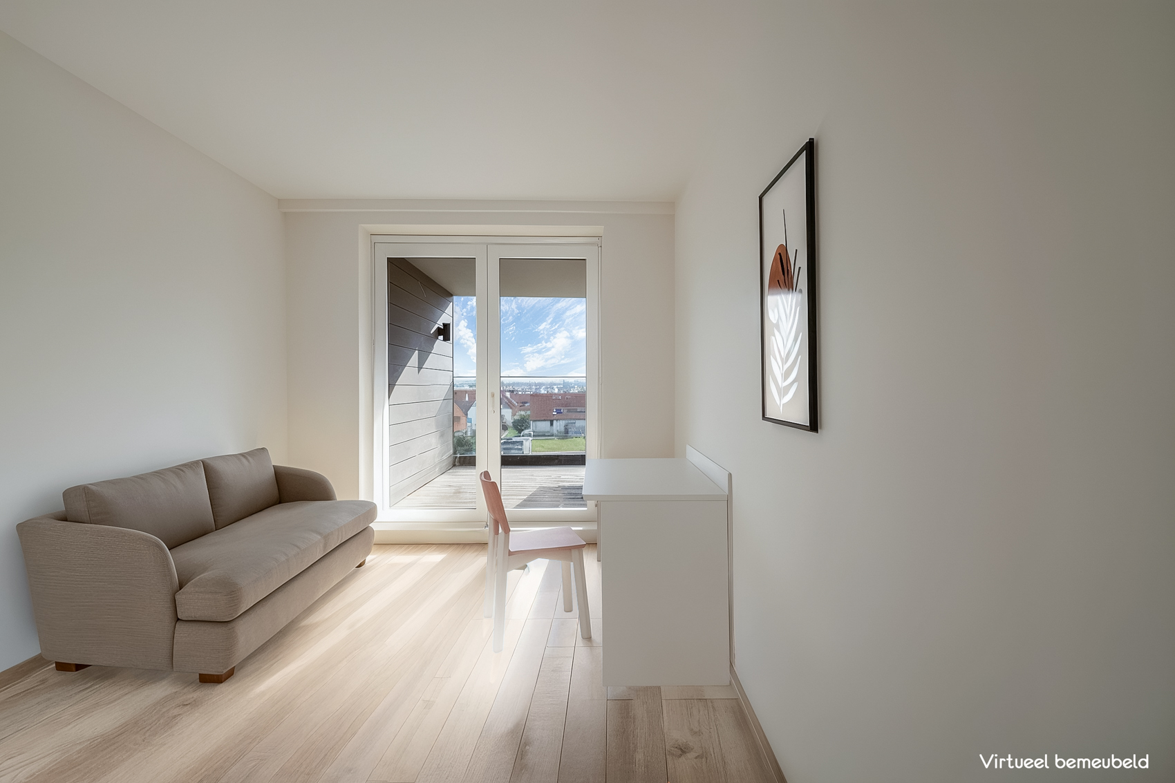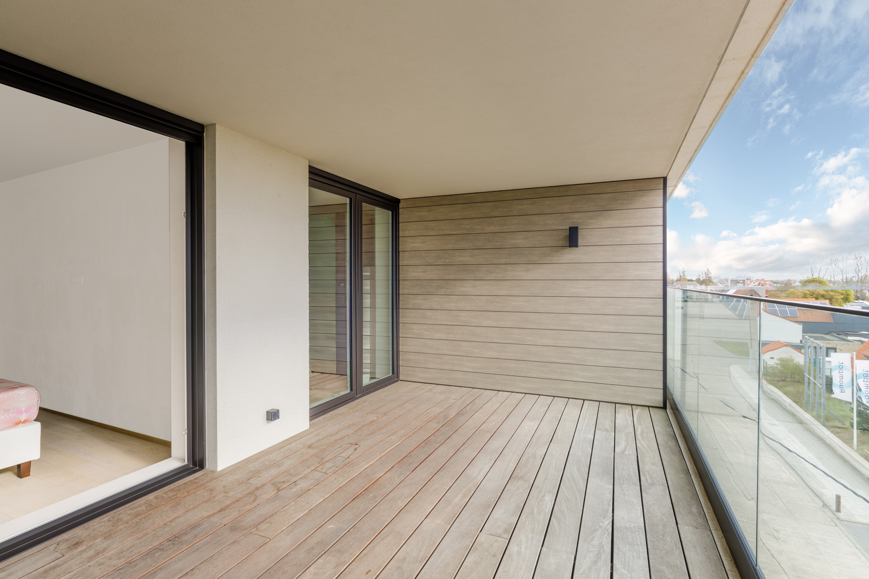 Aan de achterzijde is een zeer groot leefterras (16m²) volledig zuid georiënteerd. Hier kan u heel het jaar door buiten genieten.