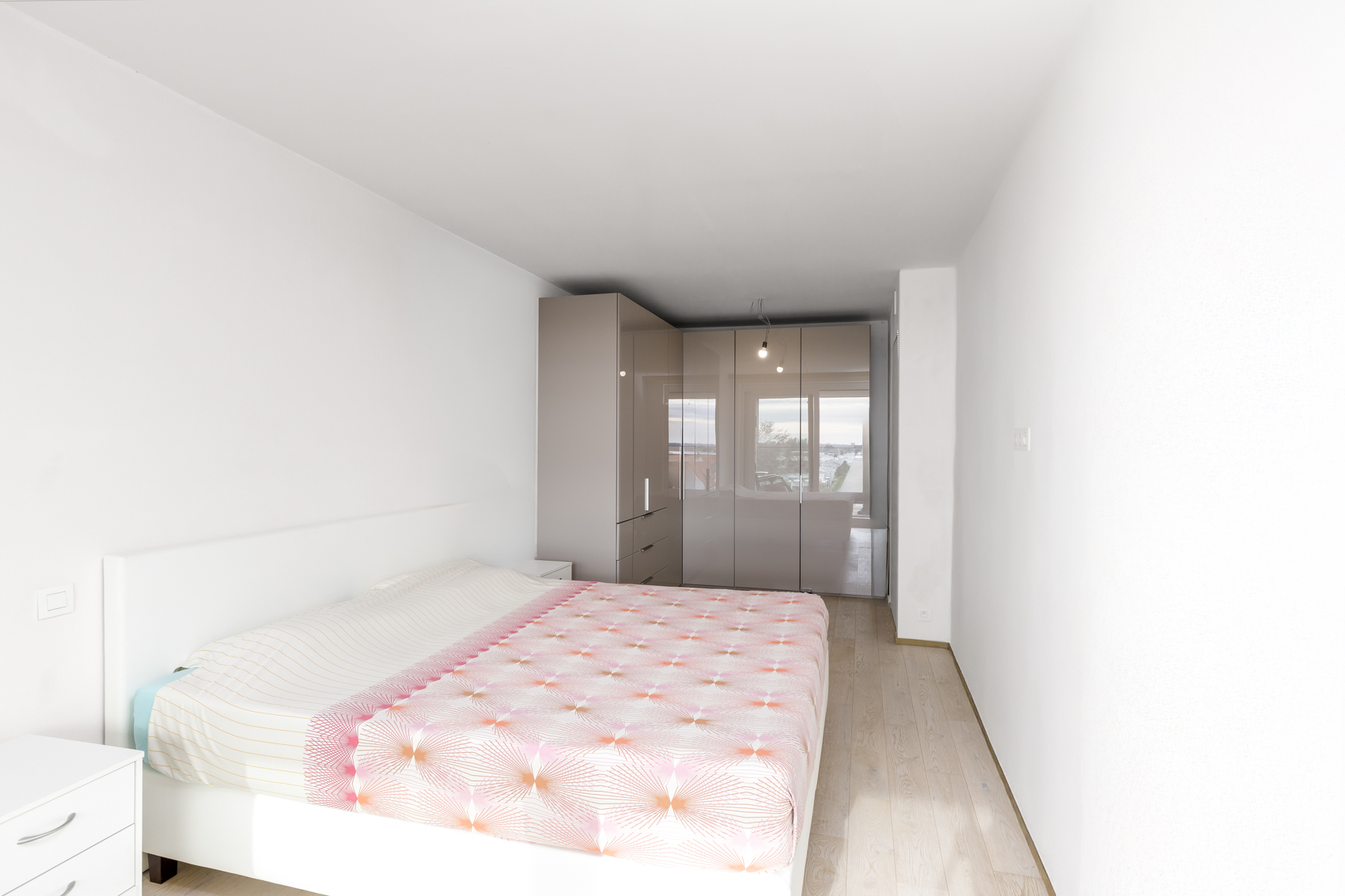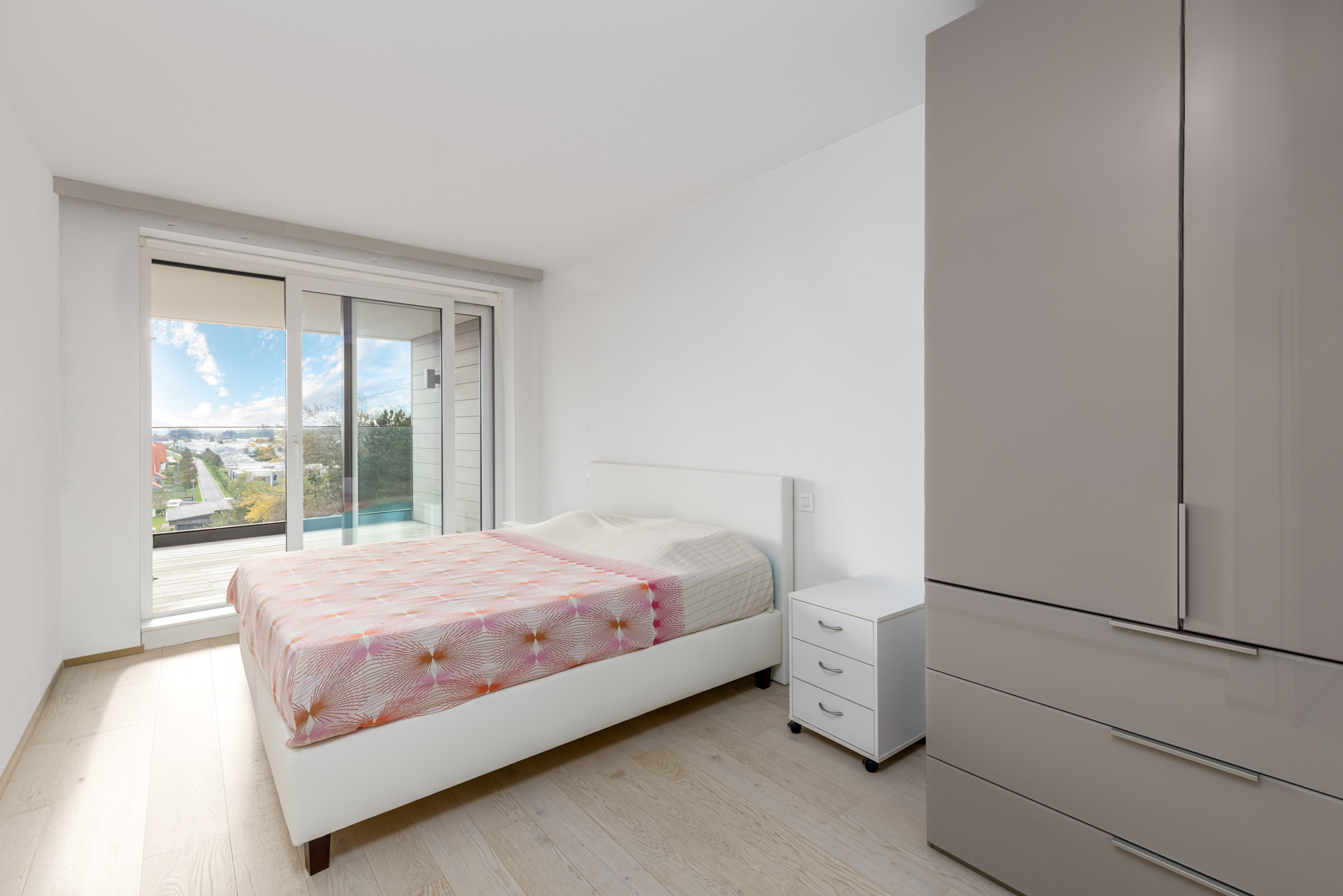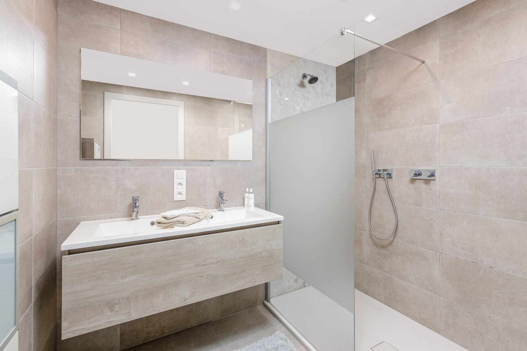 Via de nachthal gaat u naar de twee ruime slaapkamers. Waarvan één met dressing. De badkamer is voorzien van een inloopdouche en een dubbel lavabomeubel.