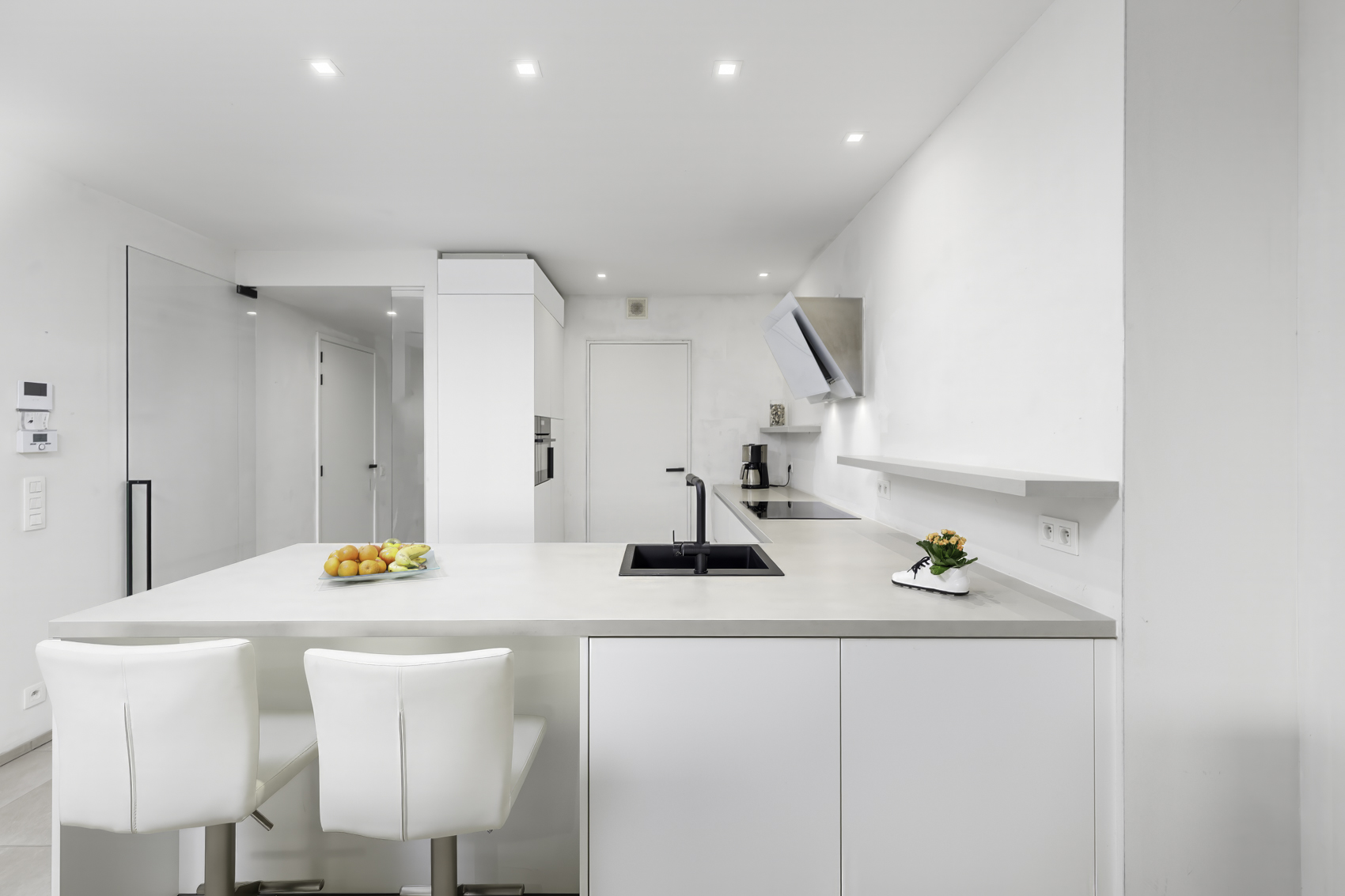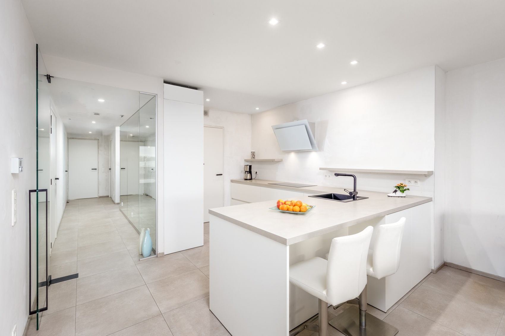 De keuken is volledig uitgerust met AEG toestellen: vaatwasser, combi-microgolfoven, koelkast, inductie kookplaat en design dampkap Novy. Aansluitend is er een grote berging met aansluiting voor wasmachine/droogkast.