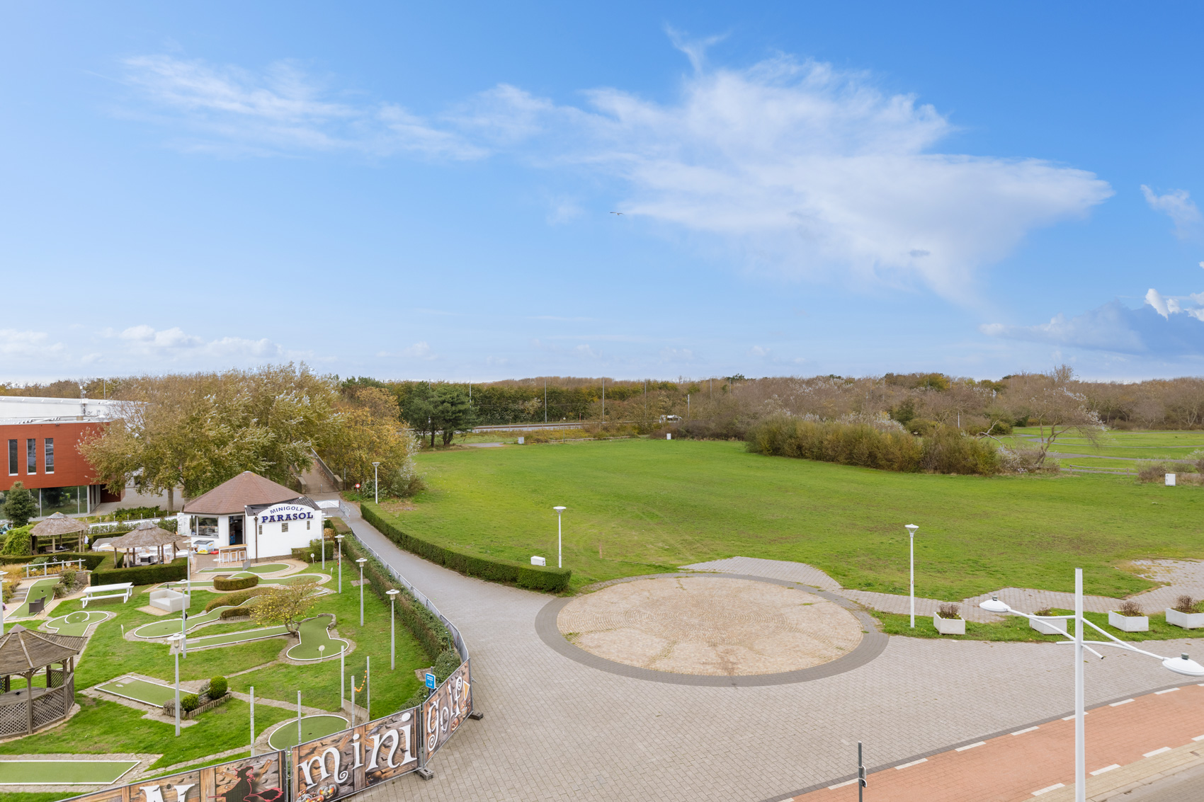Via de glazen deur komt u binnen in de ruime woonkamer (45m²). Vanuit de leefruimte heeft u open zicht op de duinen en het Dahliapark. Aansluitend met de woonkamer heeft u een groot terras waar u kan genieten van de avondzon.