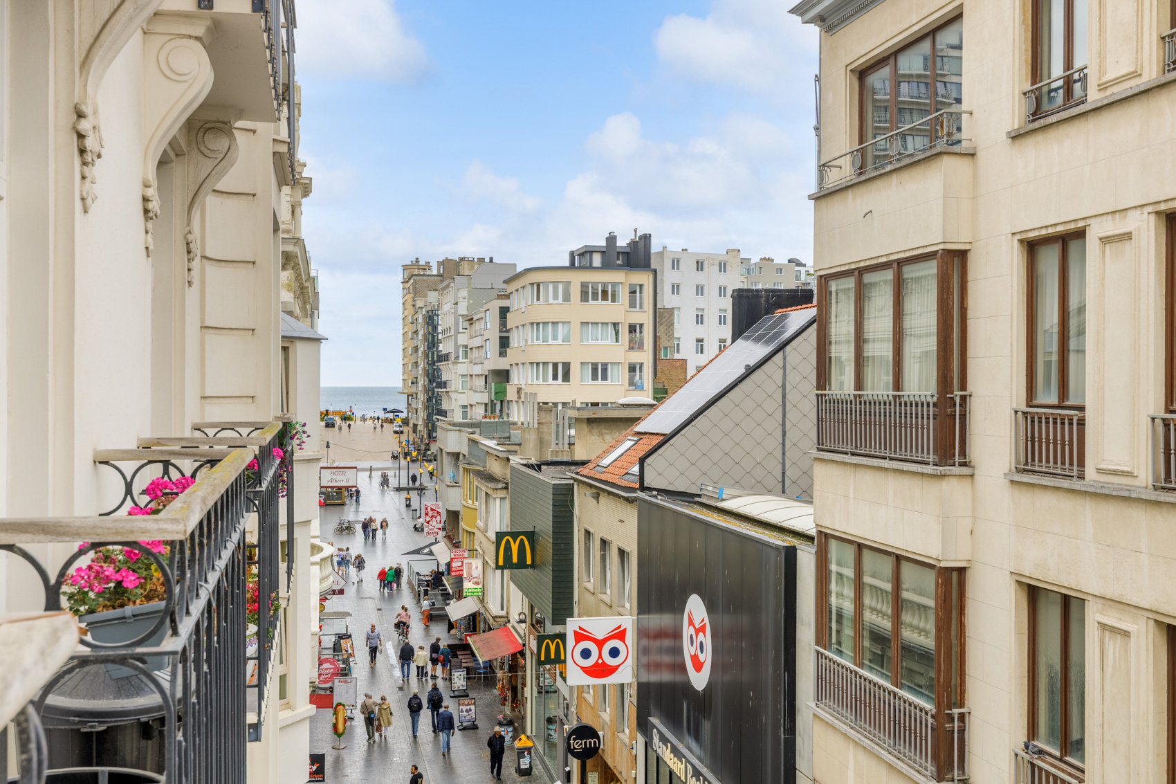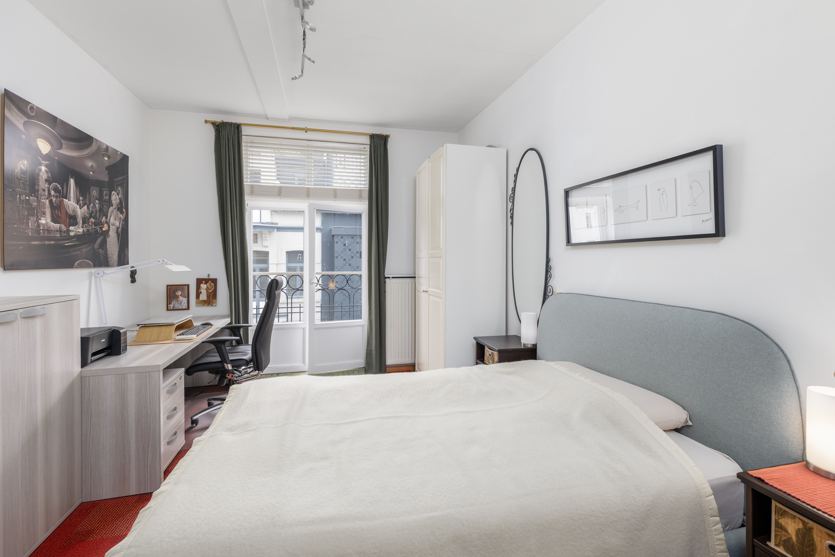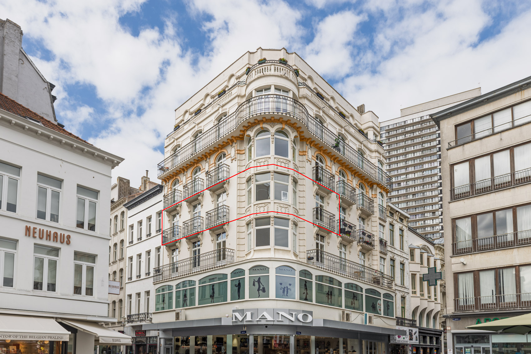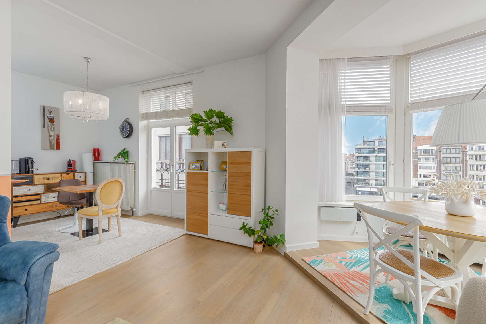 Een uniek pluspunt zijn de vier balkons, afgewerkt met blauwsteentegels en voorzien van een stijlvolle zwarte balustrade met houten handgreep – de ideale plek om te genieten van zon en stadssfeer.