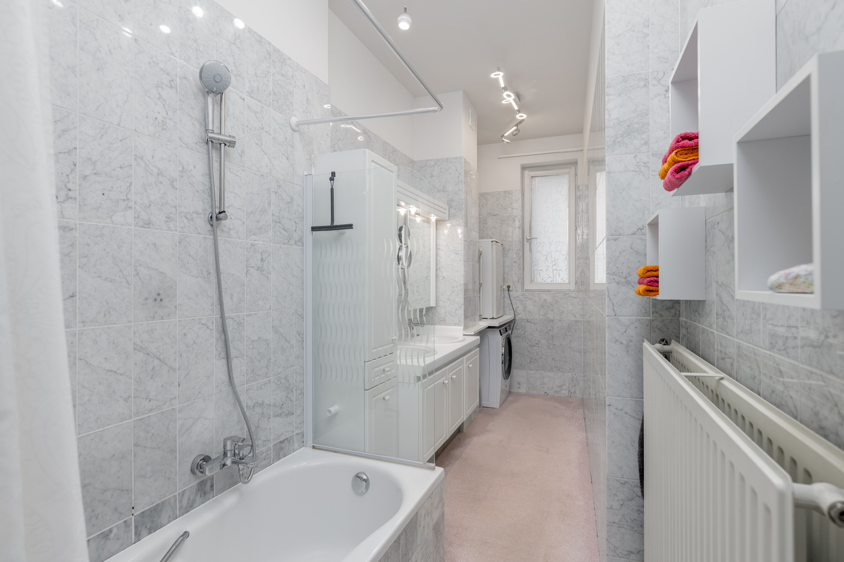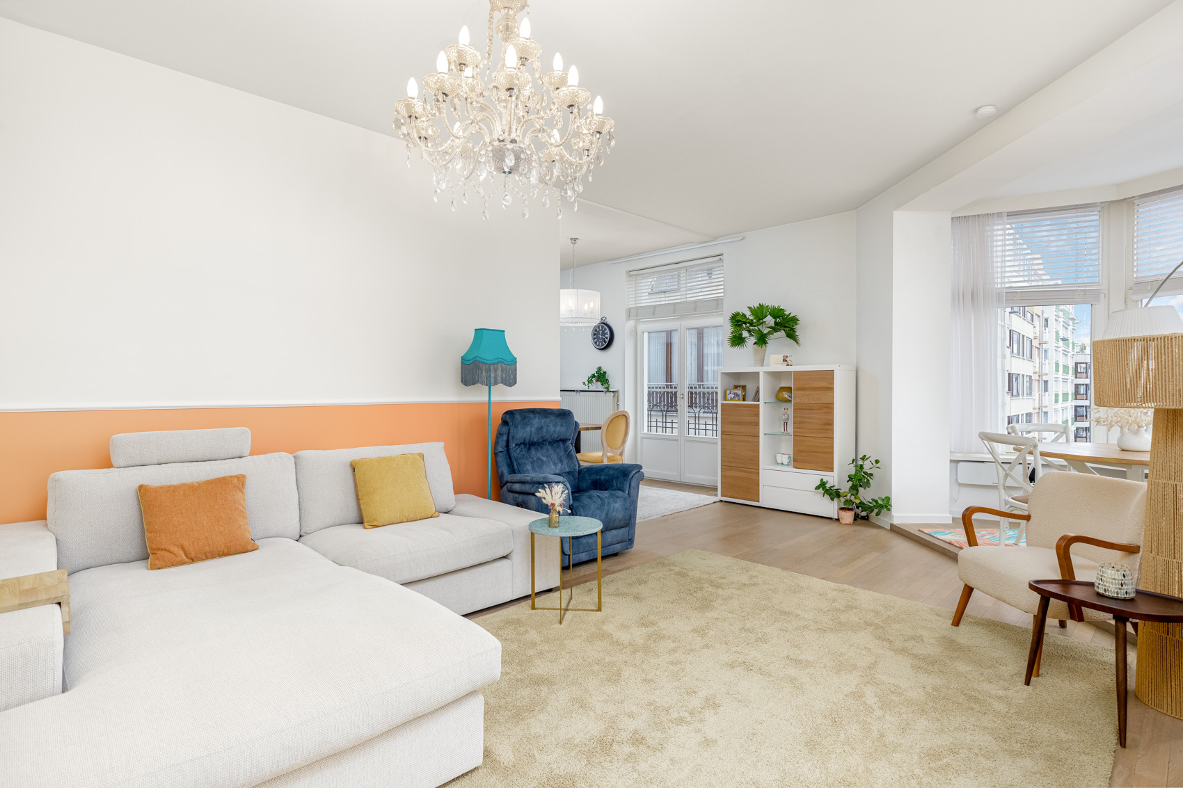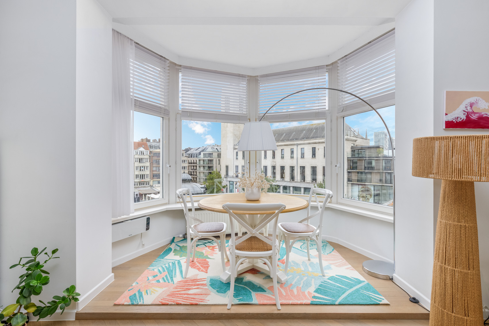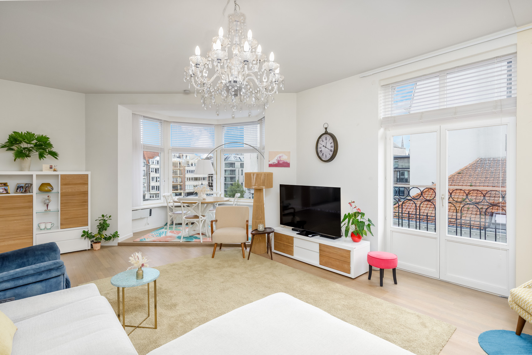 Een uniek pluspunt zijn de vier balkons, afgewerkt met blauwsteentegels en voorzien van een stijlvolle zwarte balustrade met houten handgreep – de ideale plek om te genieten van zon en stadssfeer.