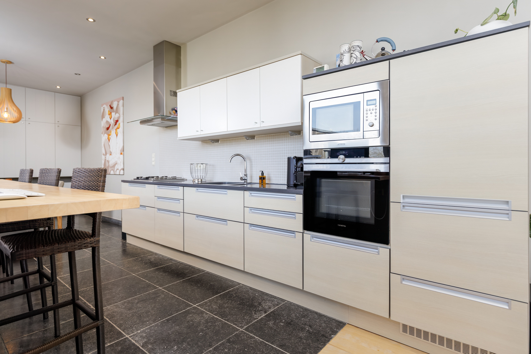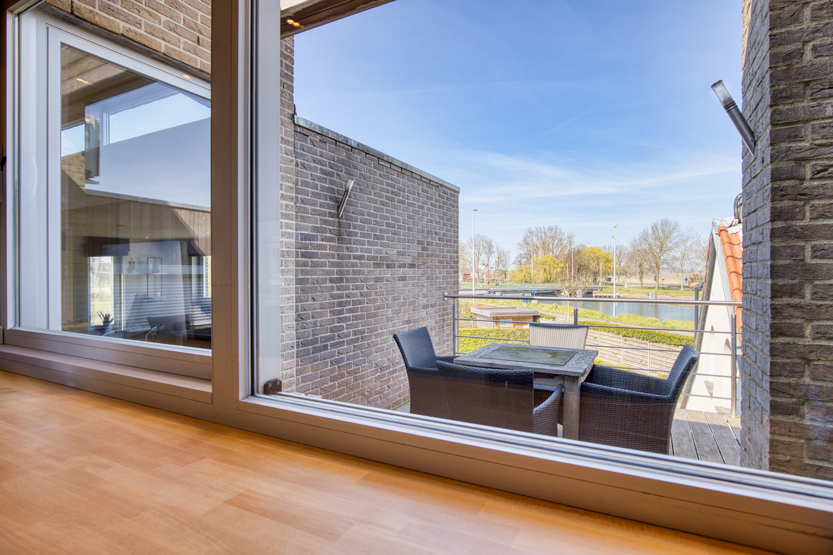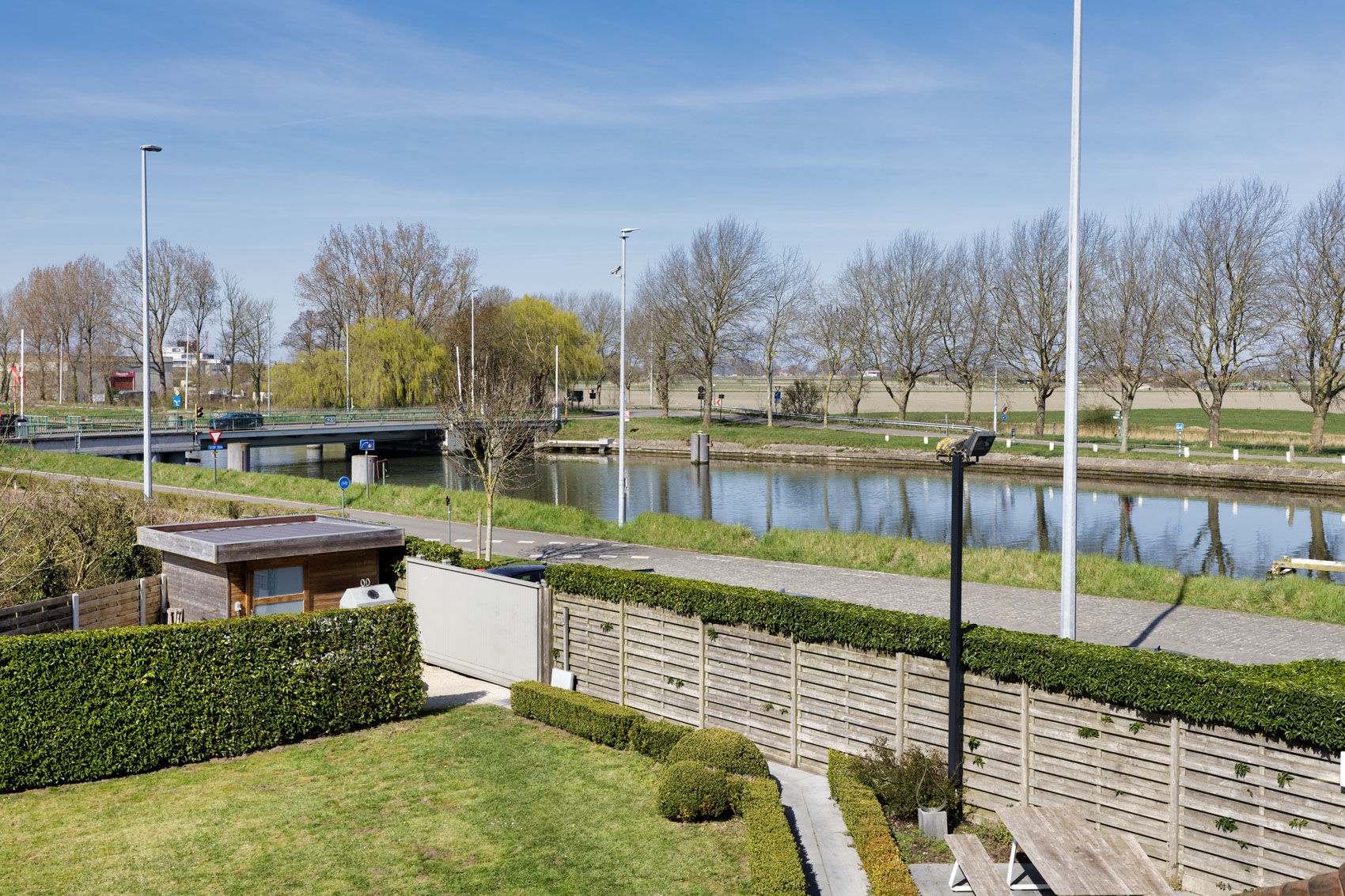 🔹 Volledig ingerichte keuken met privé-terras en zicht op de tuin en het kanaal