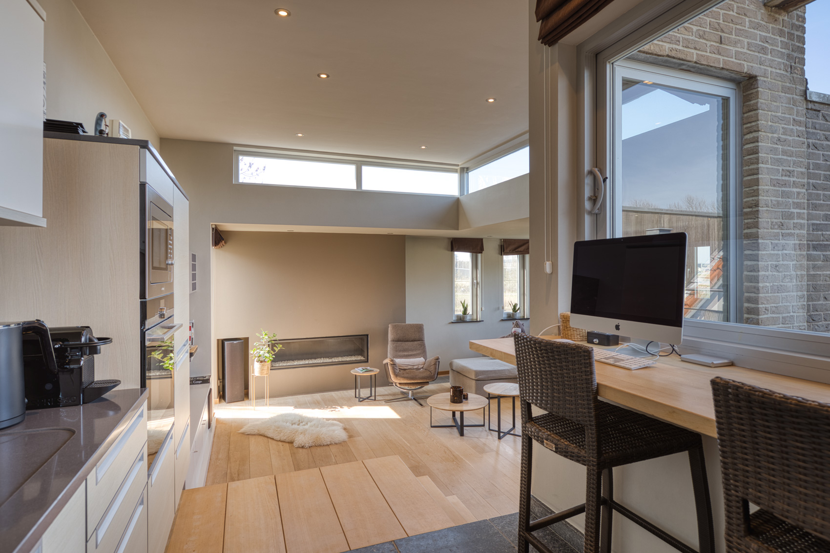 🔹 Gezellige zithoek met ingewerkte haard